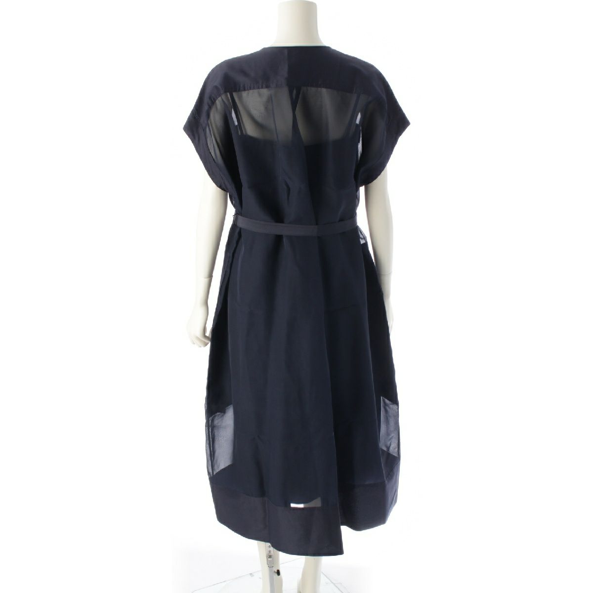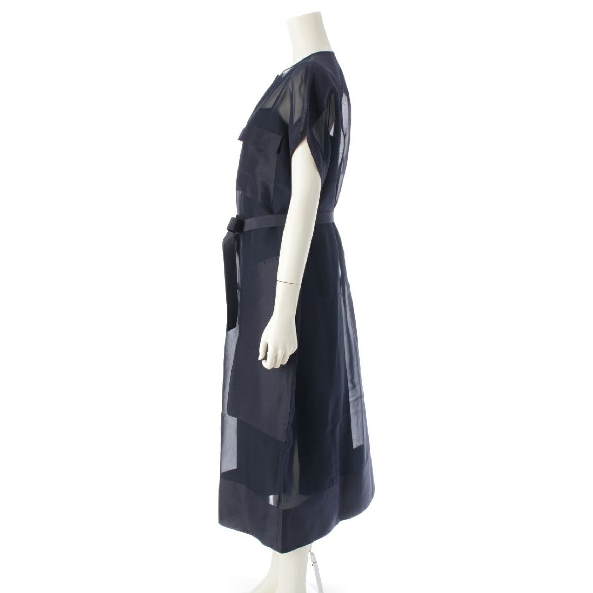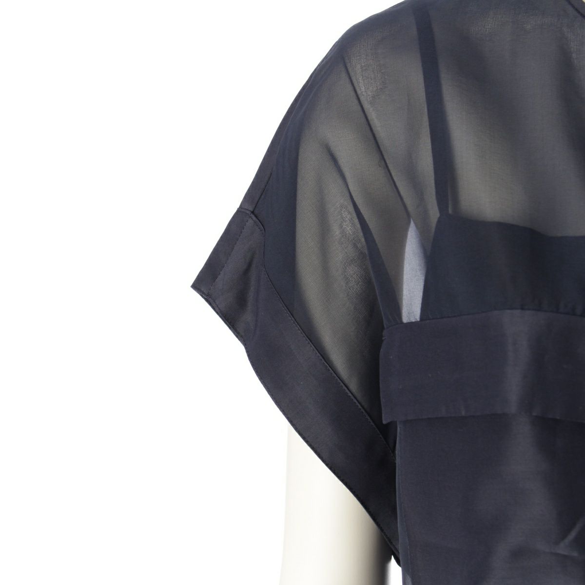 ドゥロワー 24SS シルク オーガンジー ショートスリーブ シースルー ワンピース ドレス 6526-299-1460 ネイビー 38
