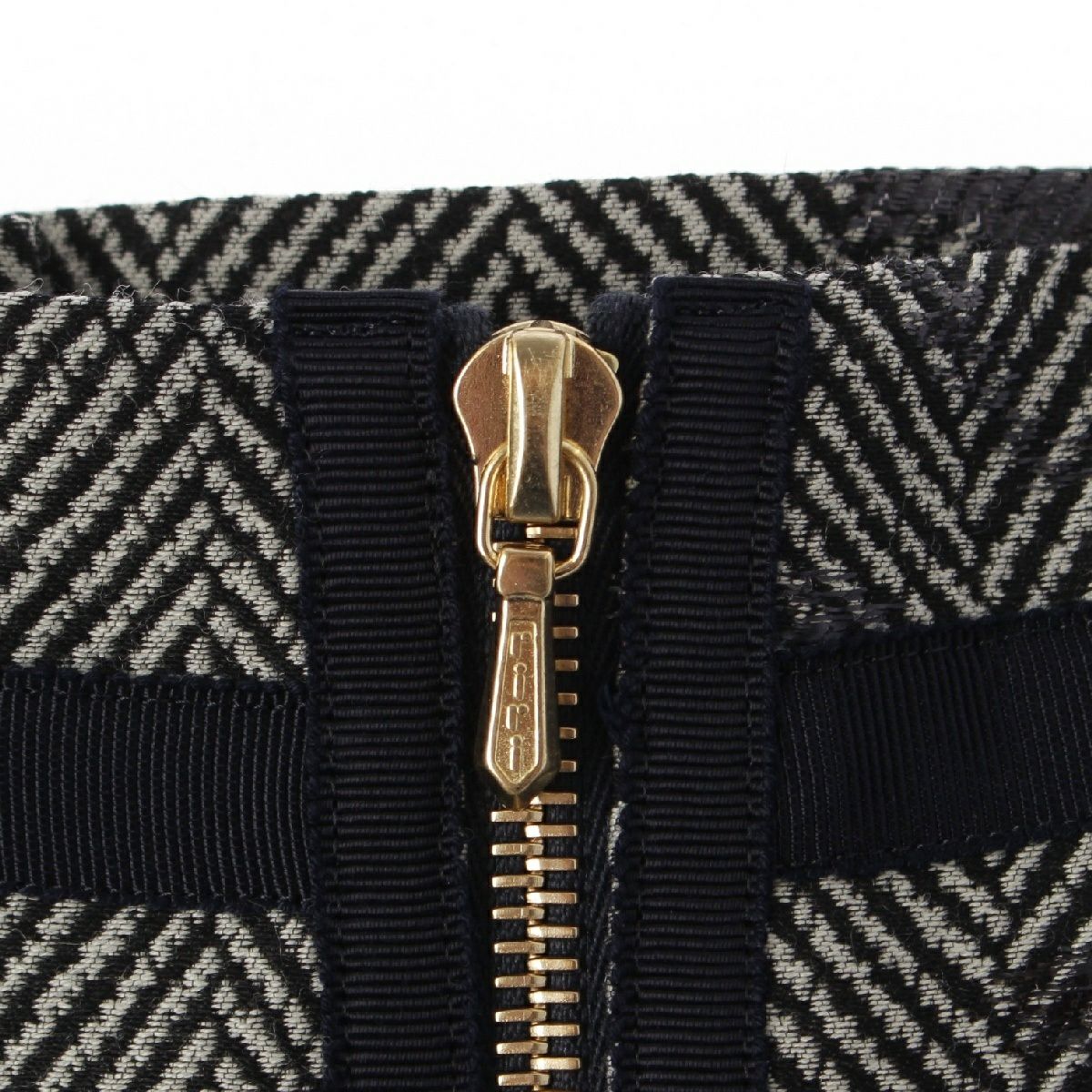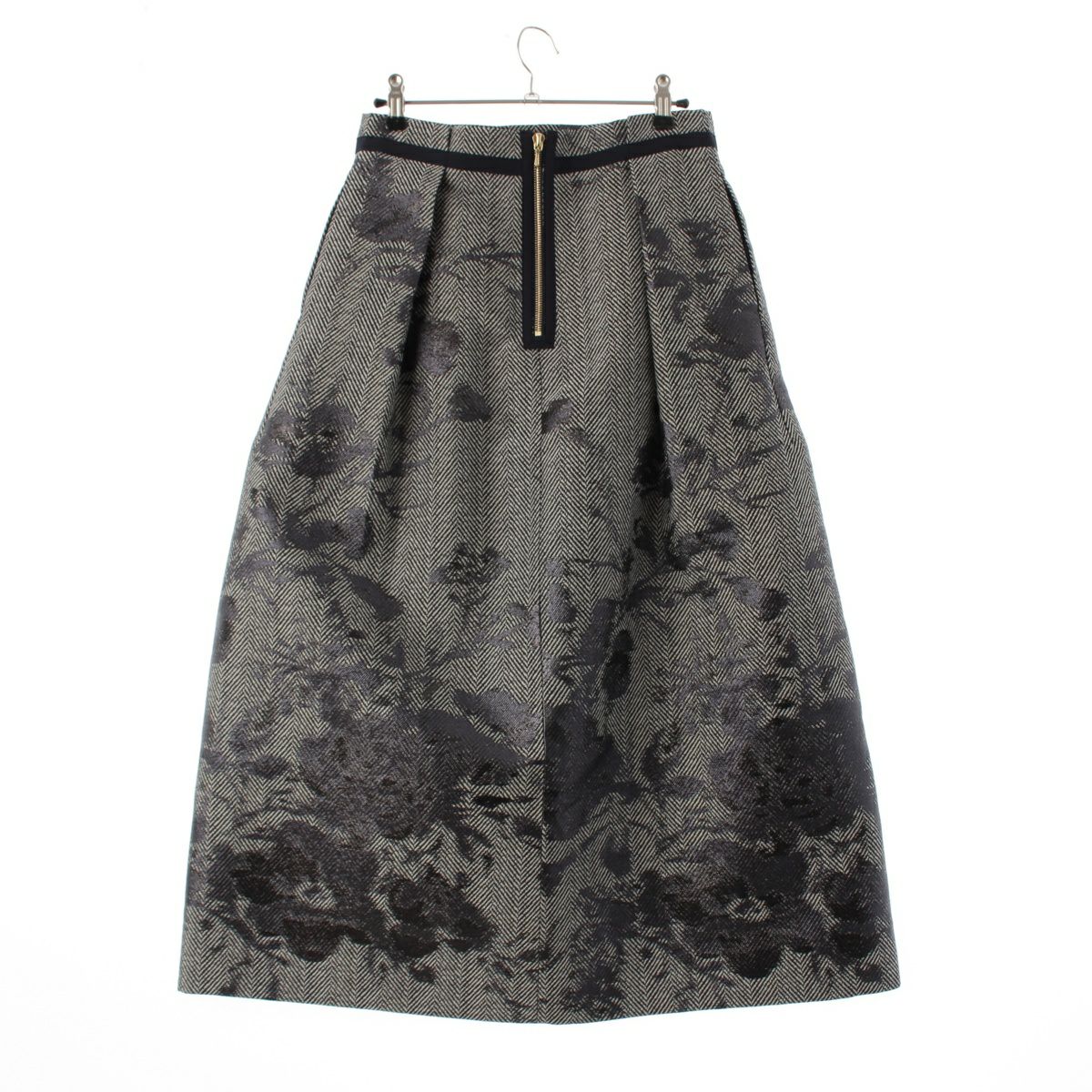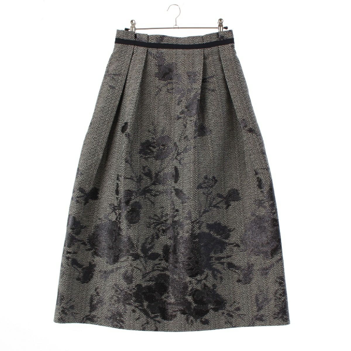 ドゥロワー ウール シルク FALL2 ヘリンボーン フラワージャガード バックジップ スカート 6524-299-1857 ダークネイビー 36