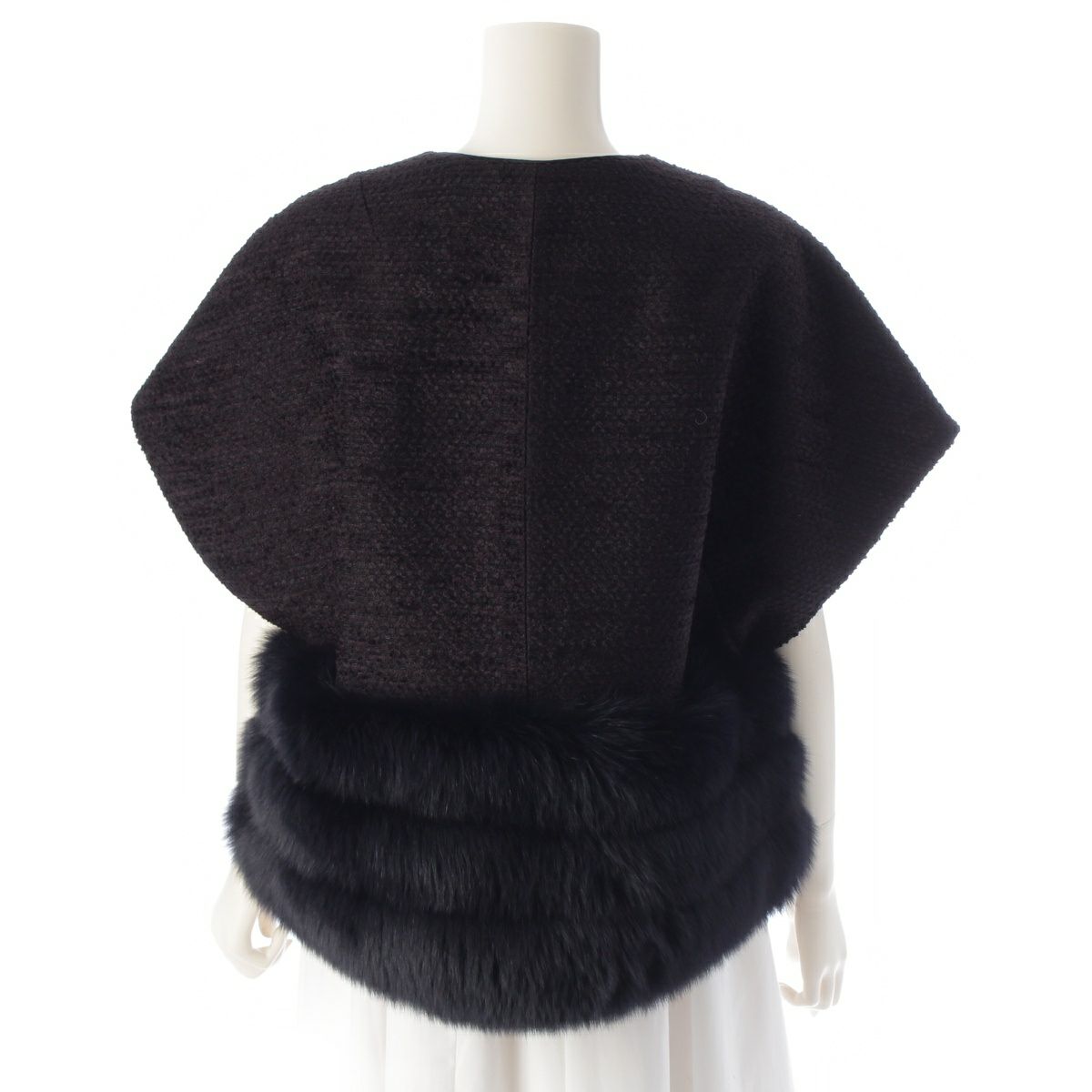 ドゥロワー 24AW シルク昆 HIVER ファーツイード ジレ ベスト ノースリーブ ジャケット アウター 6521-234-1251 ブラック ダークネイビー