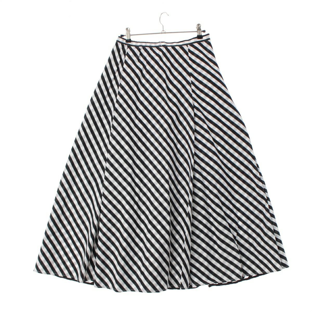 ドゥロワー 22SS コットン ギンガムチェック タック フレア ロング マキシ スカート 6524-299-1643 ホワイト ブラック 36