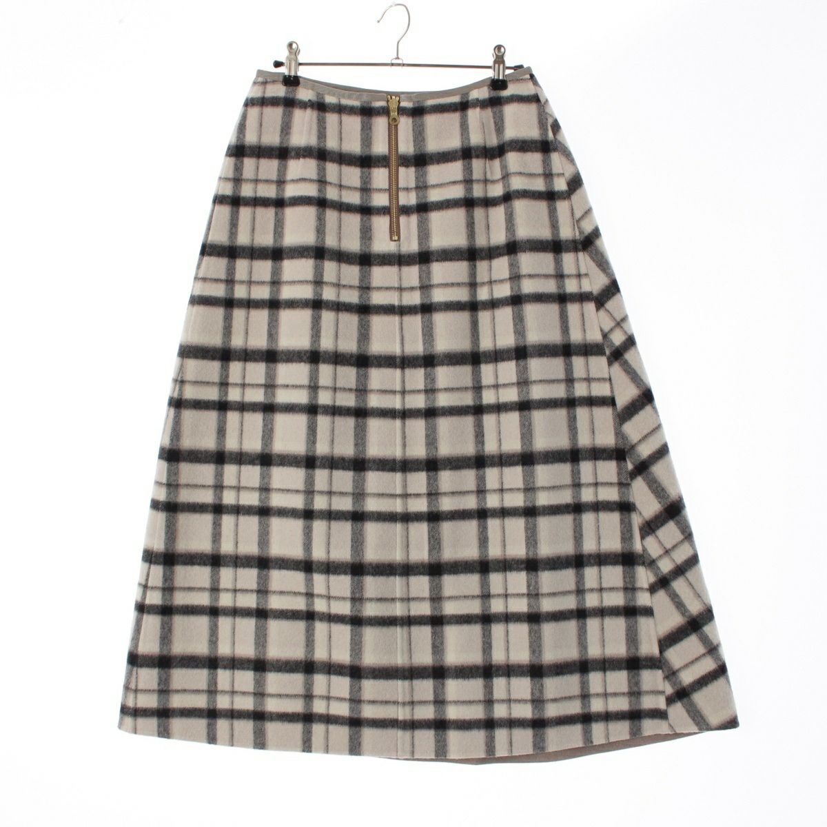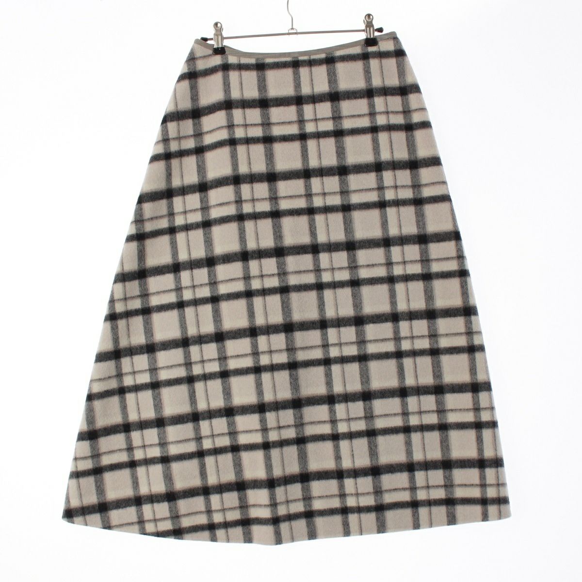 ドゥロワー 22AW ウール チェック ミディ スカート 6524-299-1666 ホワイト ブラック アイボリー 36