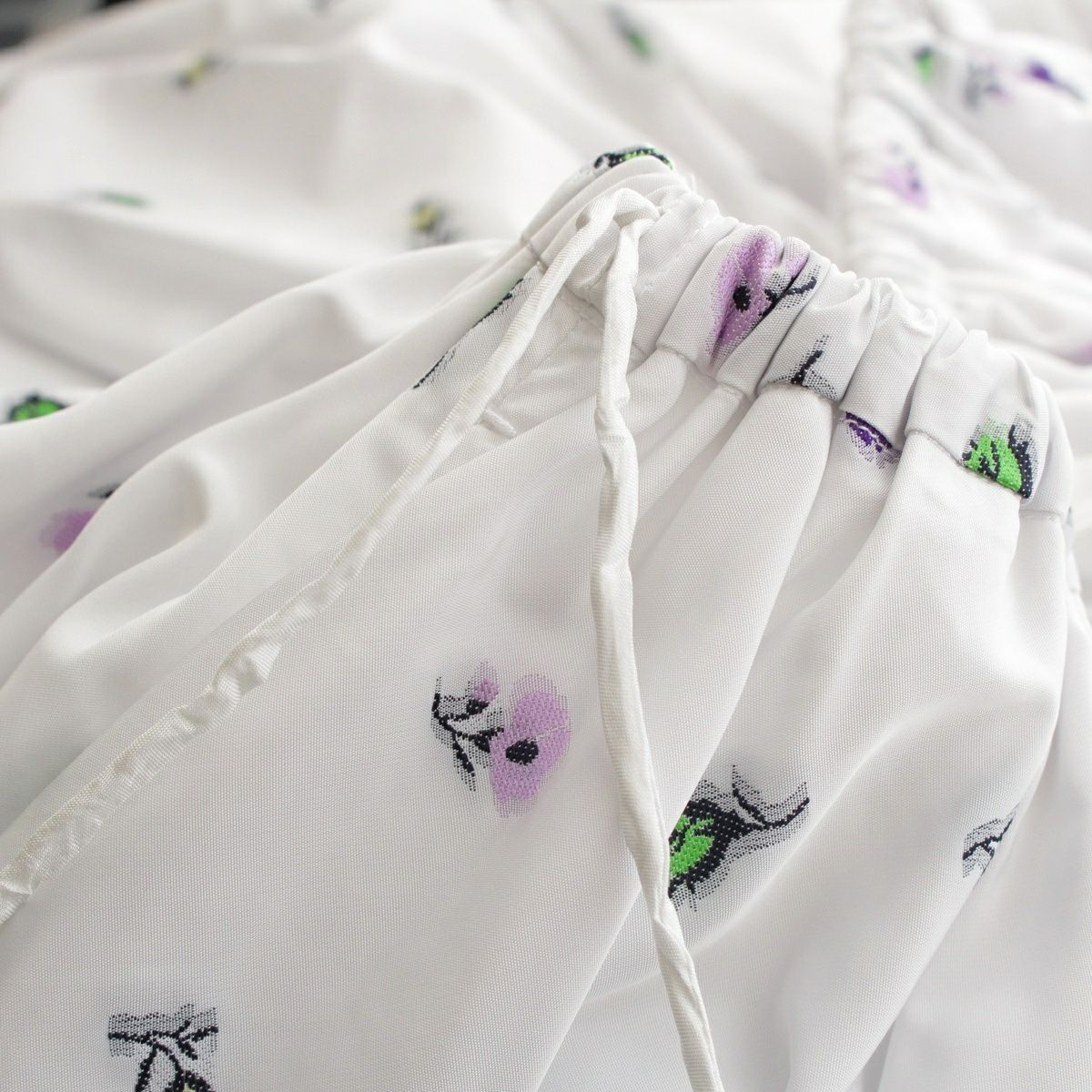 ドゥロワー 22AW 小花柄 総柄 ジャガード タフタ イージー ロング スカート ボトムス 6524-299-1708 ホワイト 36