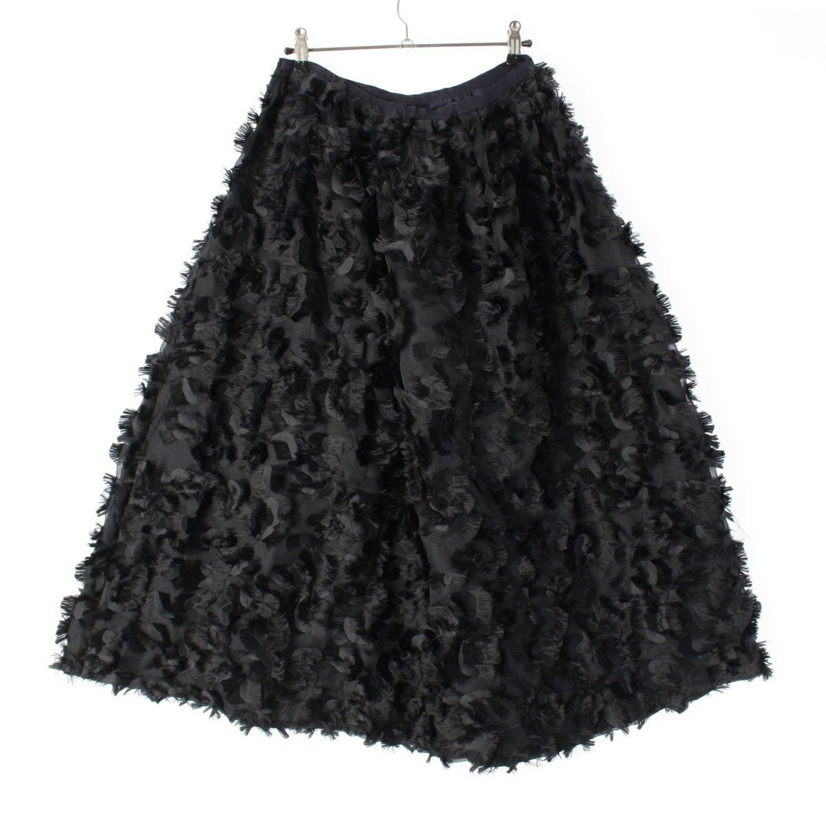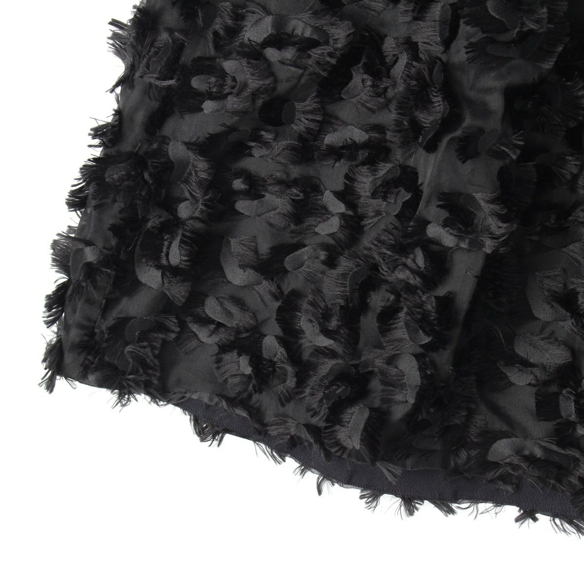 ドゥロワー シルク カットジャガード フリンジ ロング スカート ブラック 36