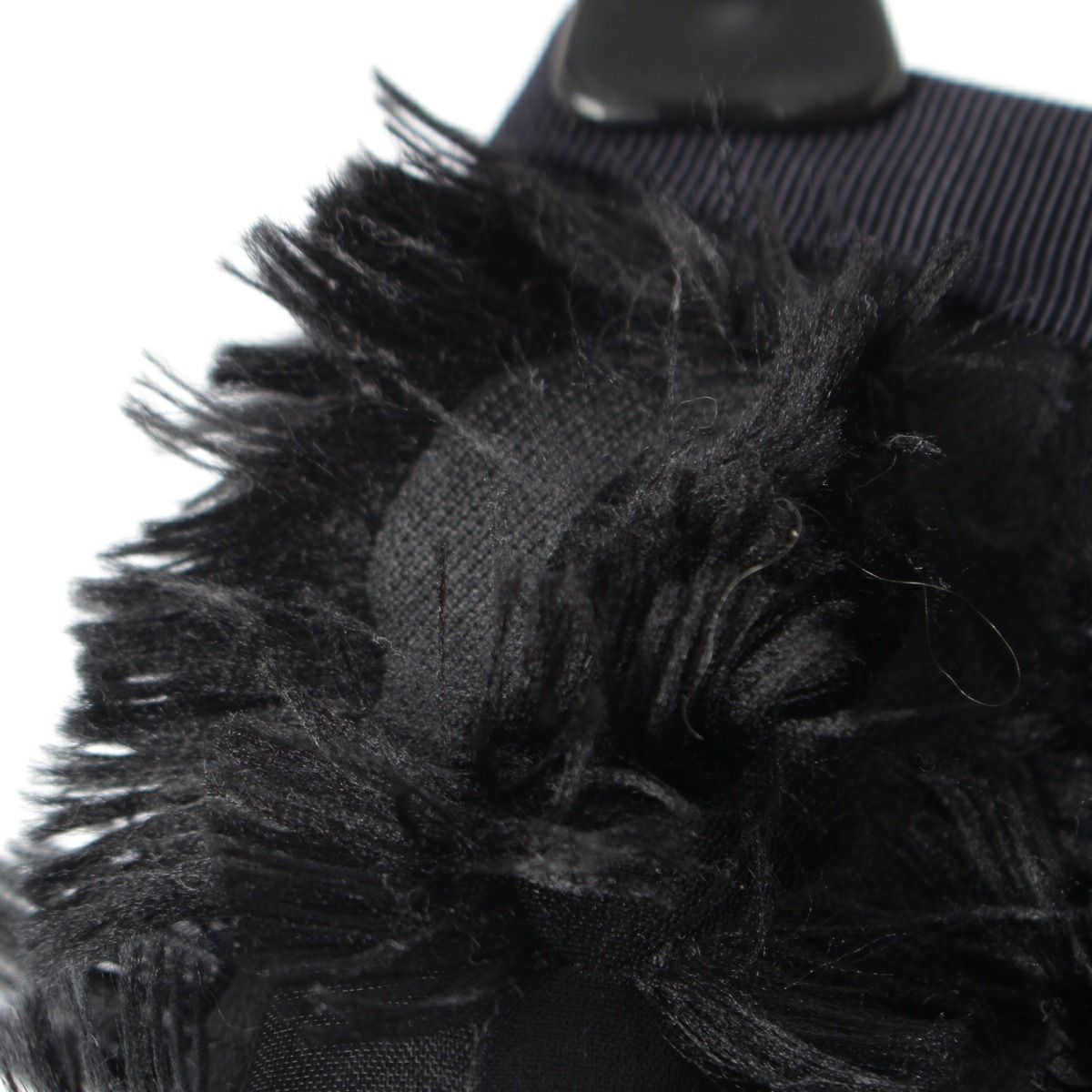 ダメージ箇所: フリンジに毛羽立ち、前面中央、裾に汚れ、フリンジに乱れ、香水のようなニオイ