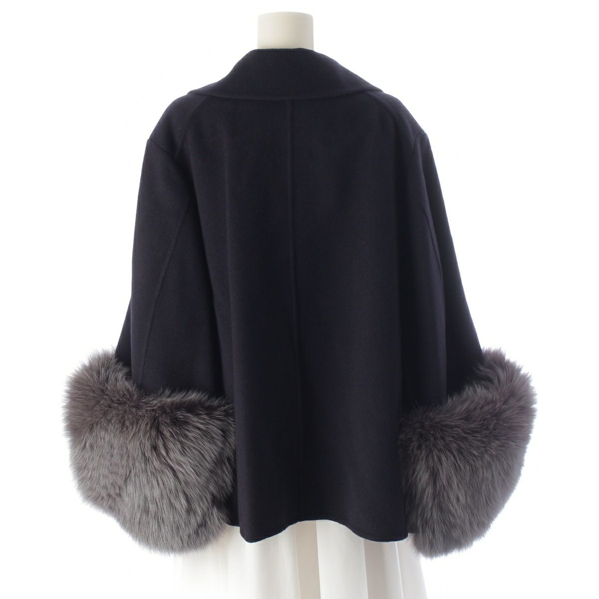 ドゥロワー 22A/W ウールケヌキ フォックスファースリーブ ショートコート ジャケット 6522-234-0733 ネイビー 36