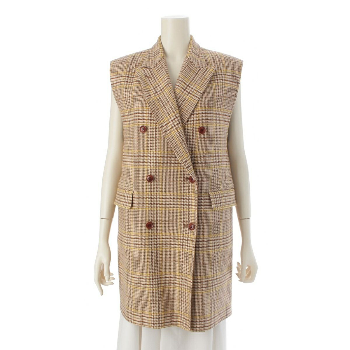 ドゥロワー カシミヤ混 ウール グレンチェック ジレ ベスト 6525-299-0795 ベージュ 36
