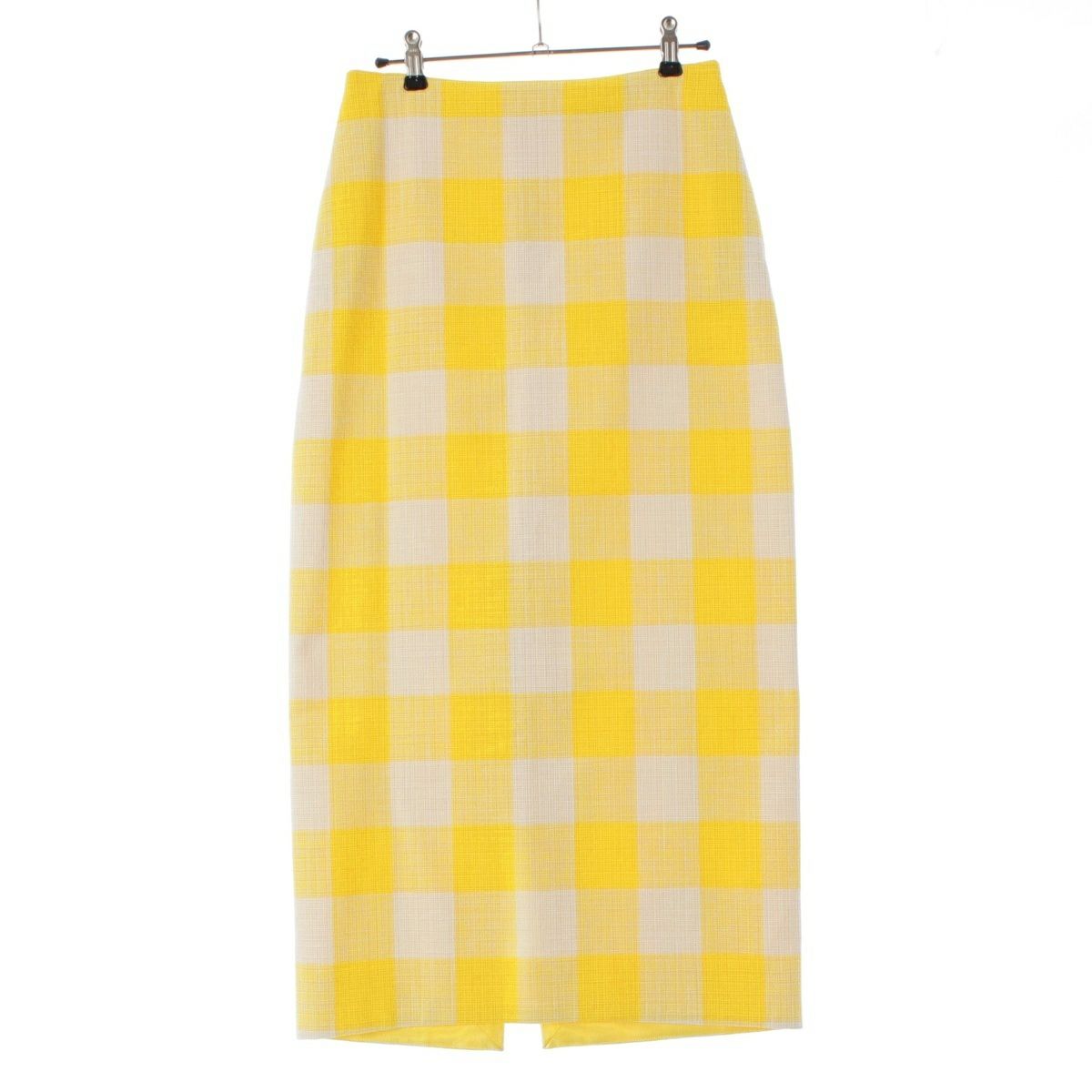 ドゥロワー 23SS コットン バックスリット ブロックチェック タイト ロング スカート ボトムス 6524-299-1718 イエロー ホワイト 36