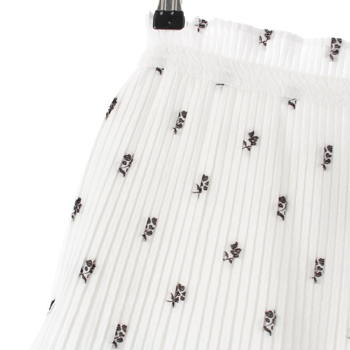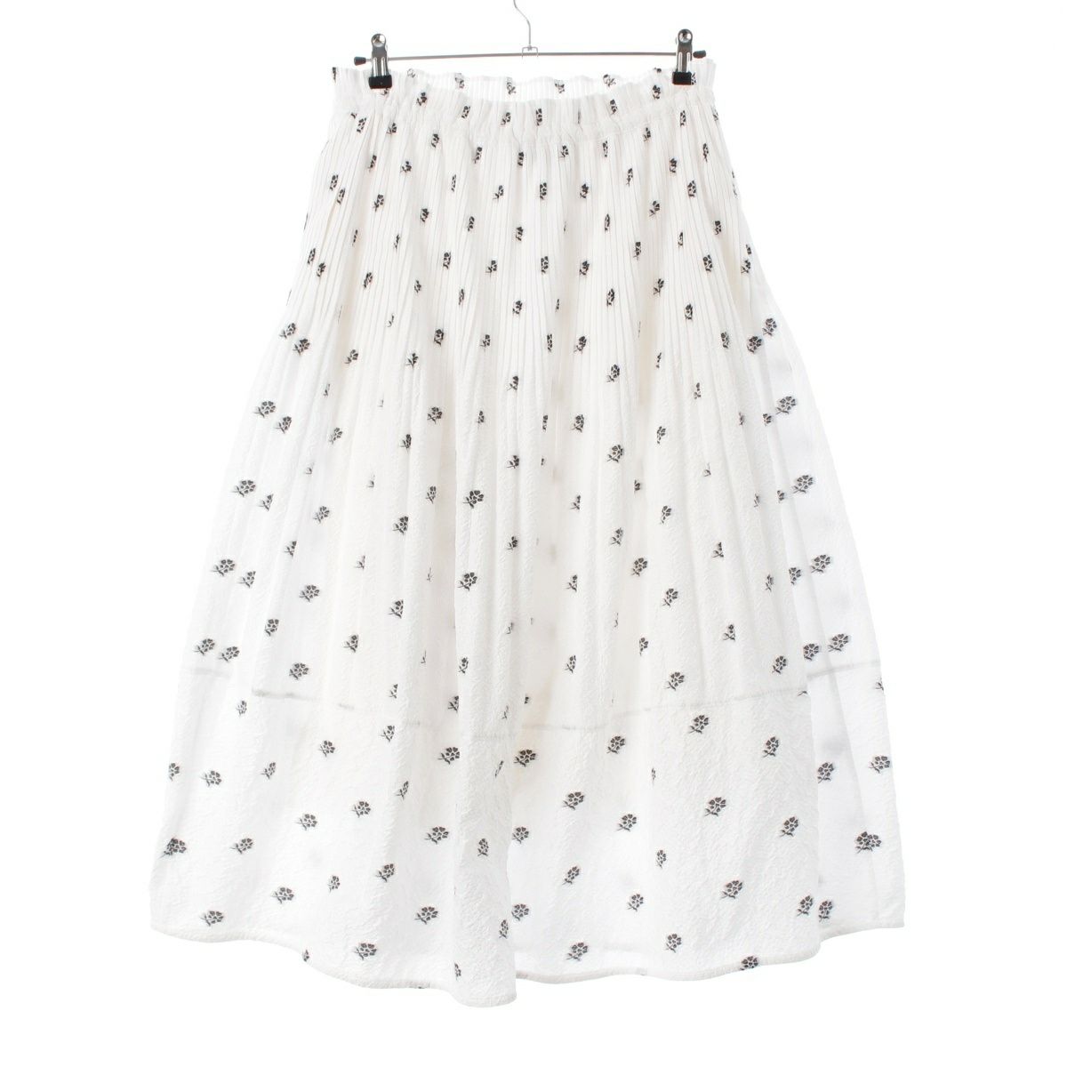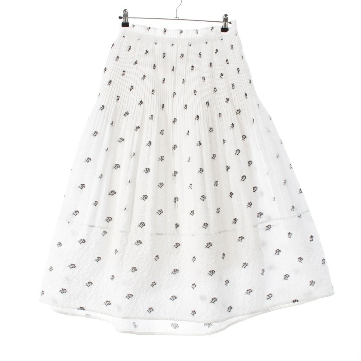 ドゥロワー 23SS フラワージャガード プリーツ 切替 ロングスカート ボトムス 6524-299-1742 ホワイト ブラック 36