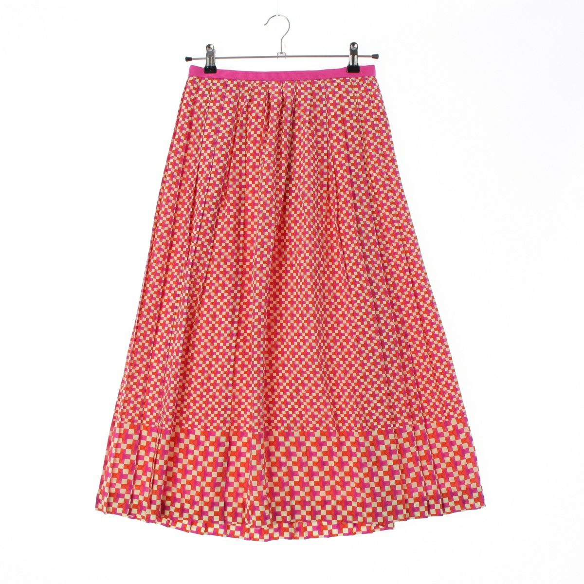 ドゥロワー FALL2 シルク ジオメトリック 総柄 プリント プリーツ ロングスカート ボトムス 6524-299-1770 マルチカラー 36