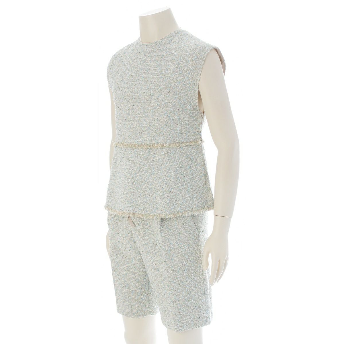 ドゥロワー コットン ツイード フリンジ ノースリーブ パンツセットアップ 6519-236-0318 ライトブルー グリーン ベージュ オフホワイト 36