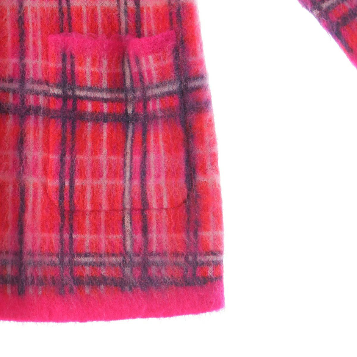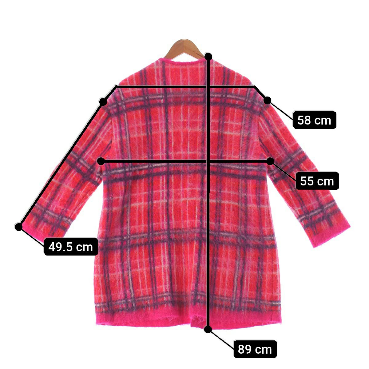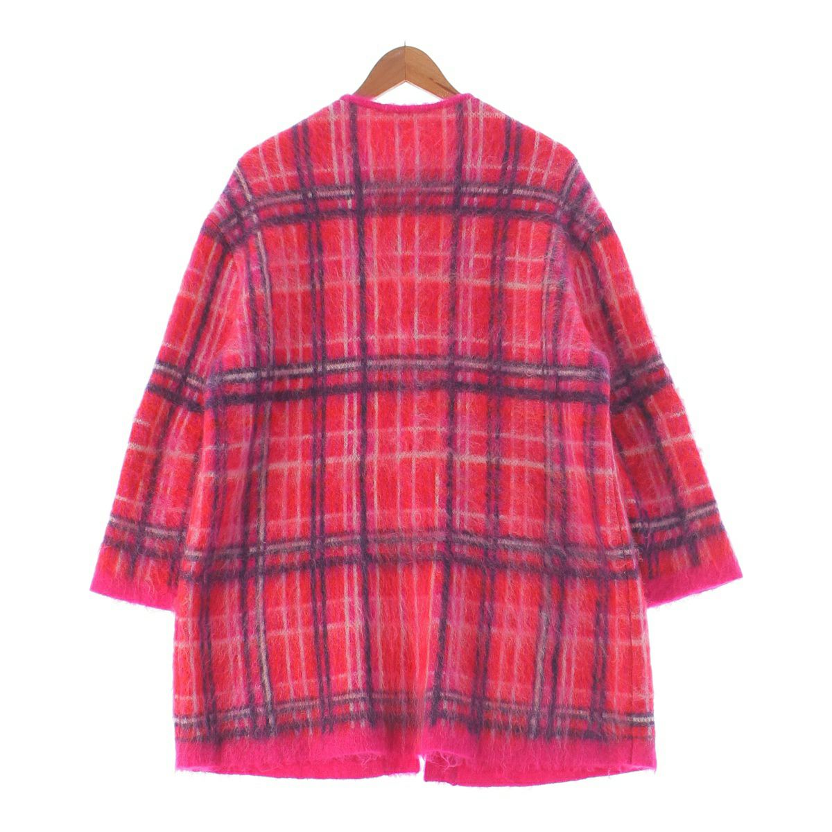 ドゥロワー モヘアウール チェック柄 ノーカラー ロング コート ジャケット アウター 6515-299-0586 ピンク