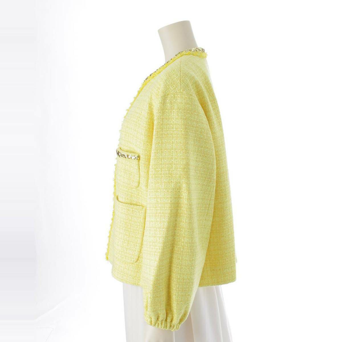 ドゥロワー DRAWER 22SS コットン ウール ツイード スパンコール ノーカラージャケット イエロー 36