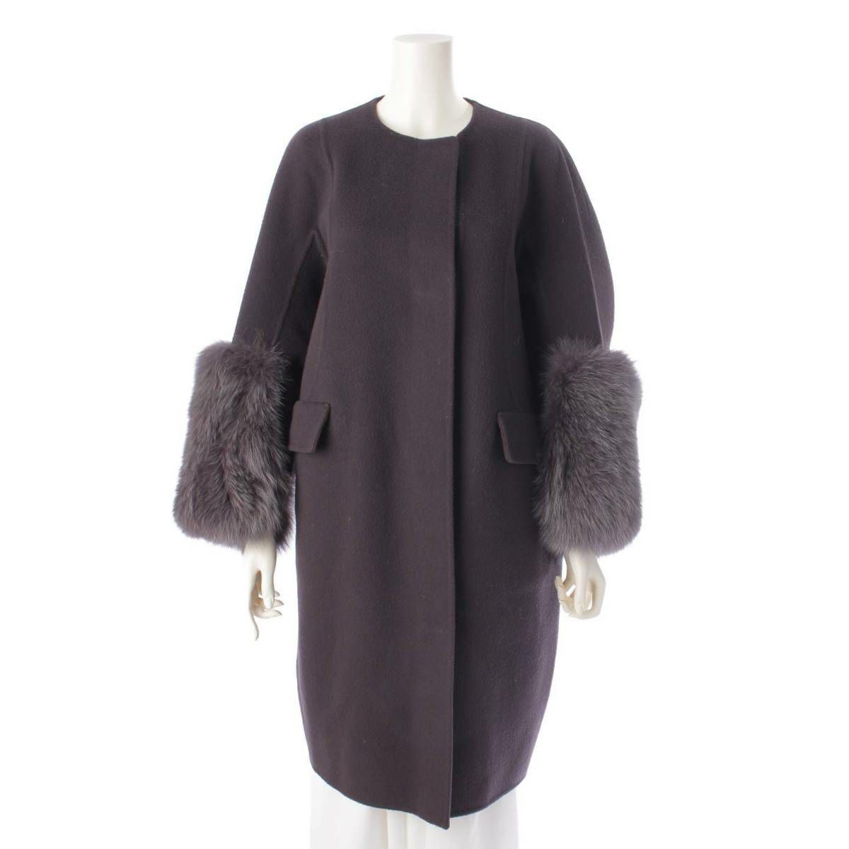ドゥロワー DRAWER 21AW ウール ケヌキ ファーカフス ノーカラーコート 6525-234-0790 ネイビー 36