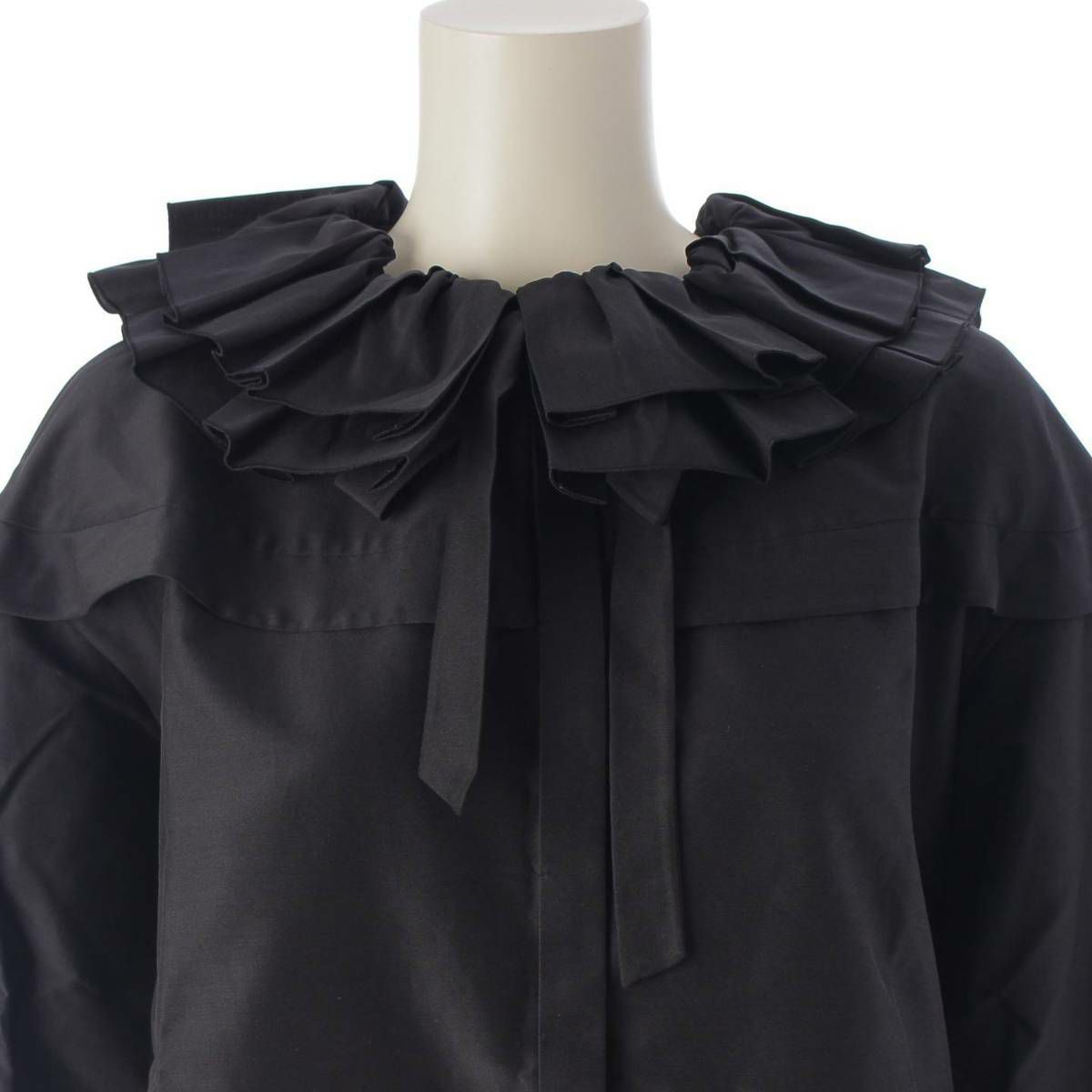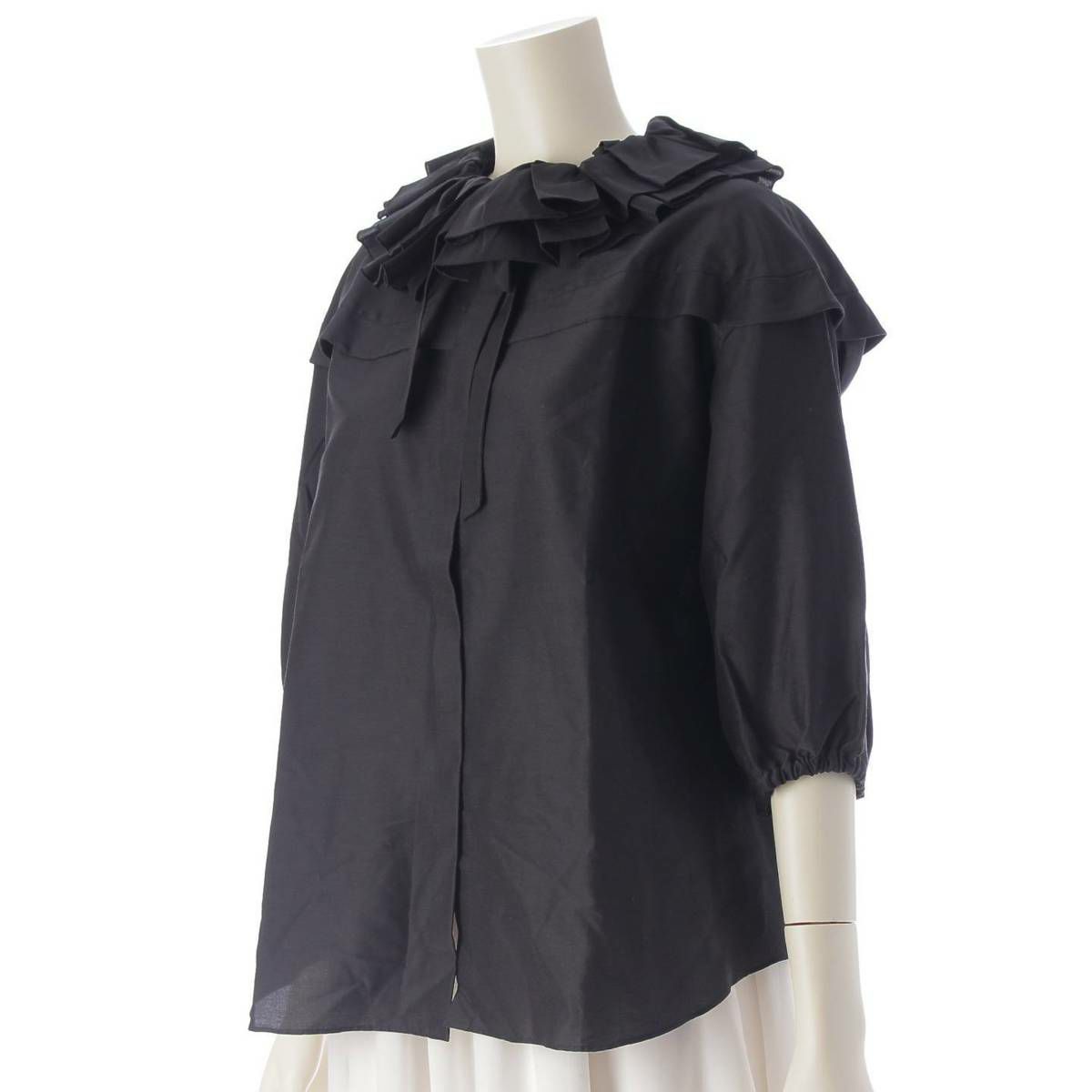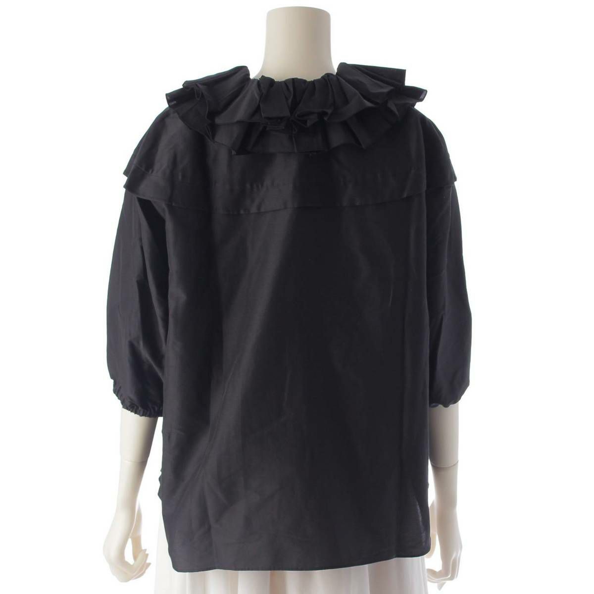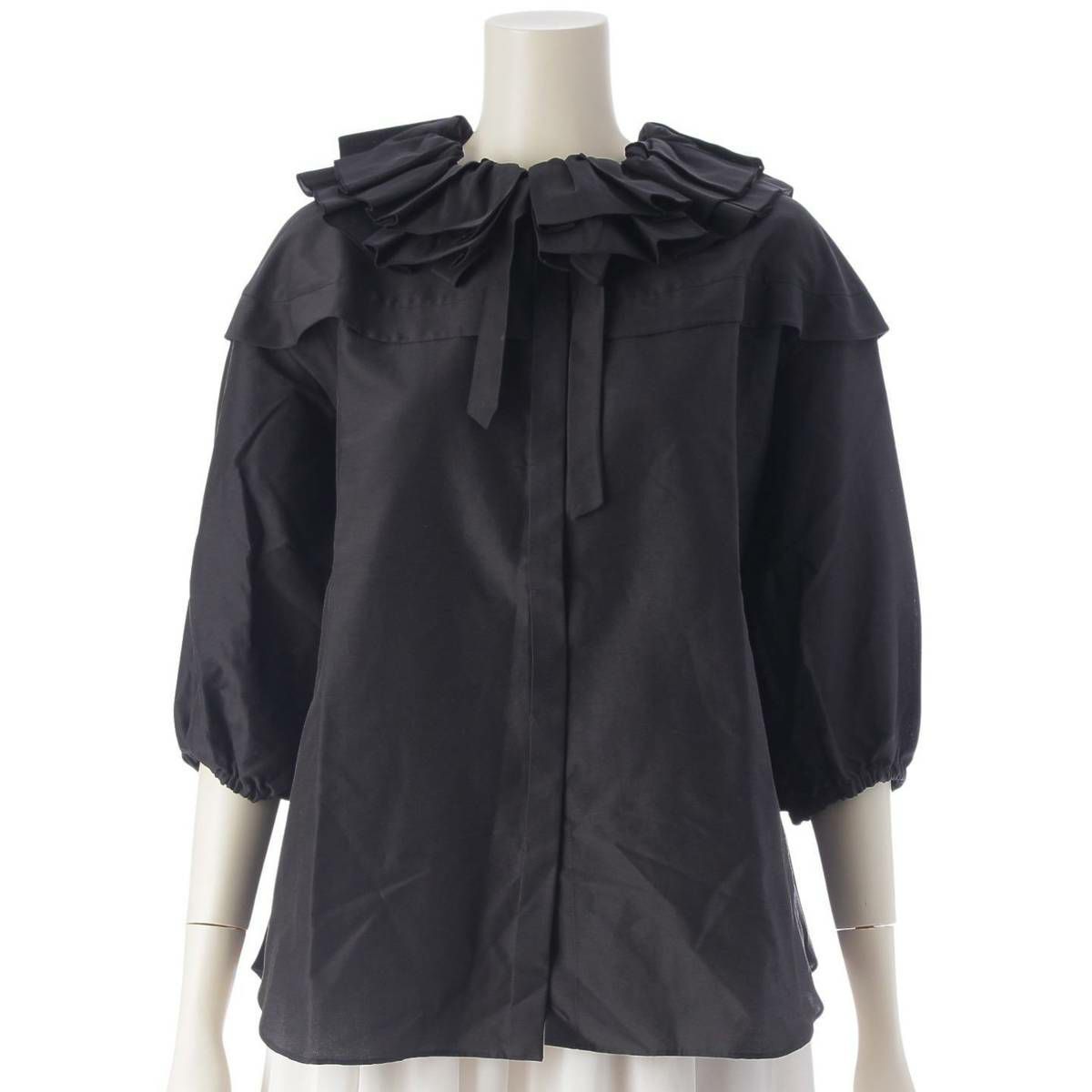 ドゥロワー DRAWER フリルギャザー リボン ブラウス コットンシルク 6521-299-1024 ブラック 36