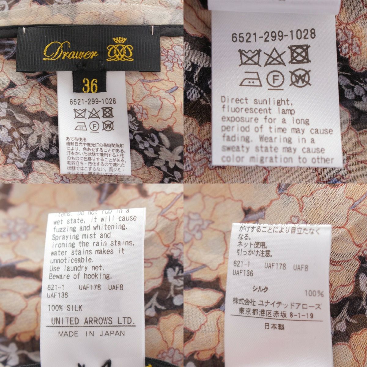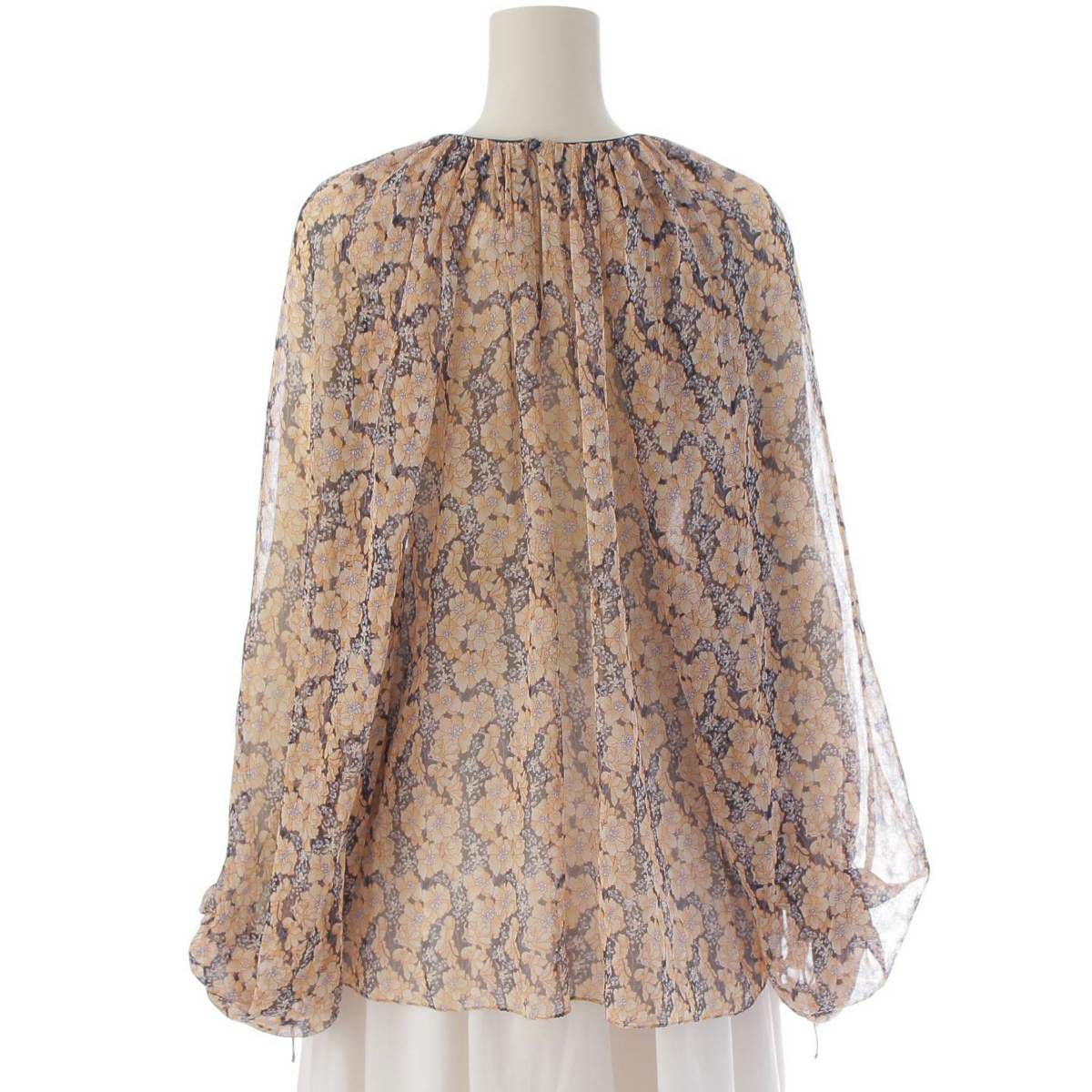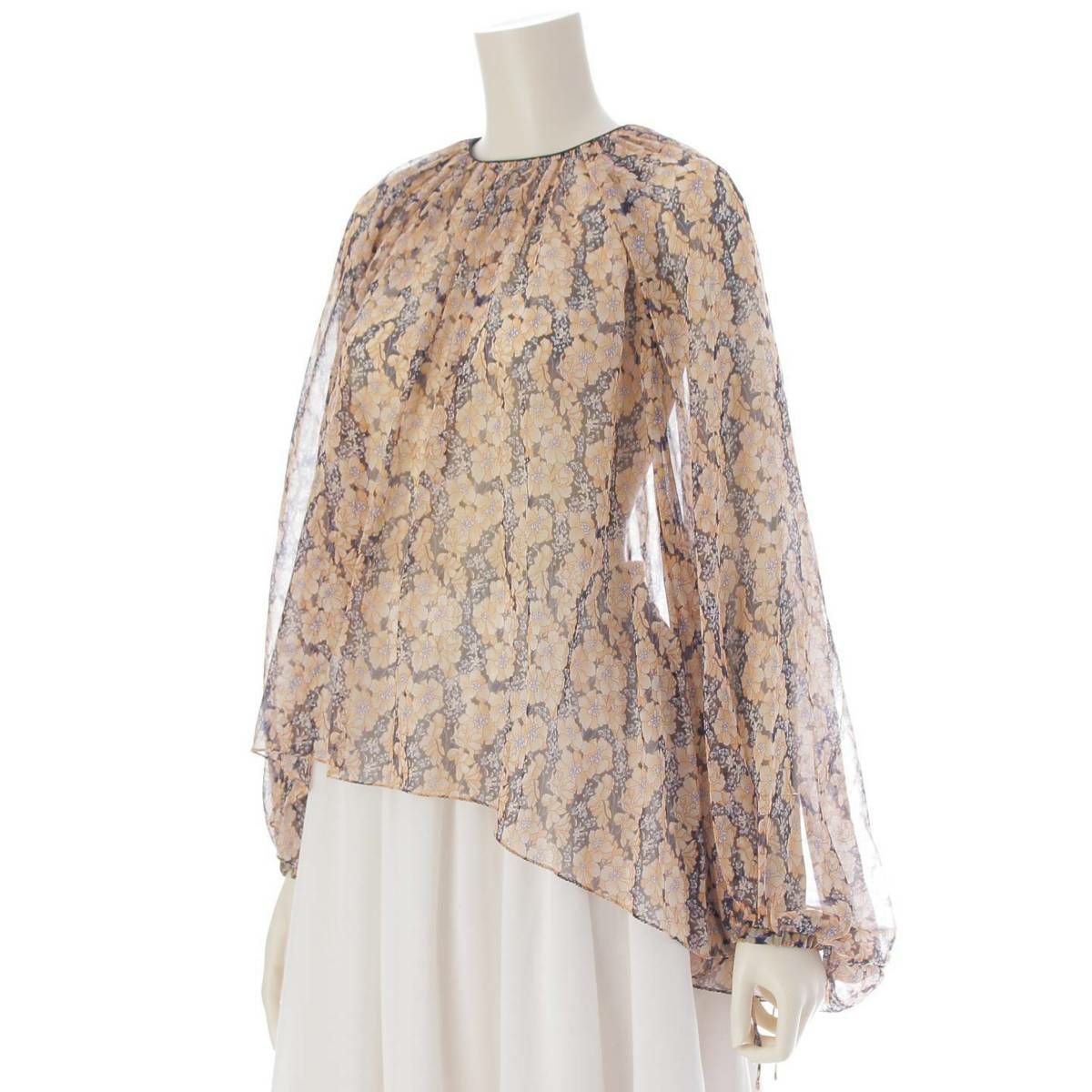 ドゥロワー DRAWER バルーンスリーブ シルク シースルー プルオーバーブラウス ブラック×ベージュ 36