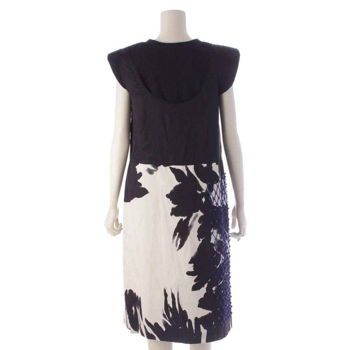 ドリス ヴァンノッテン Dries Van Noten ビーズ 総柄 キャミワンピース トップス セットアップ ブルー ブラック S