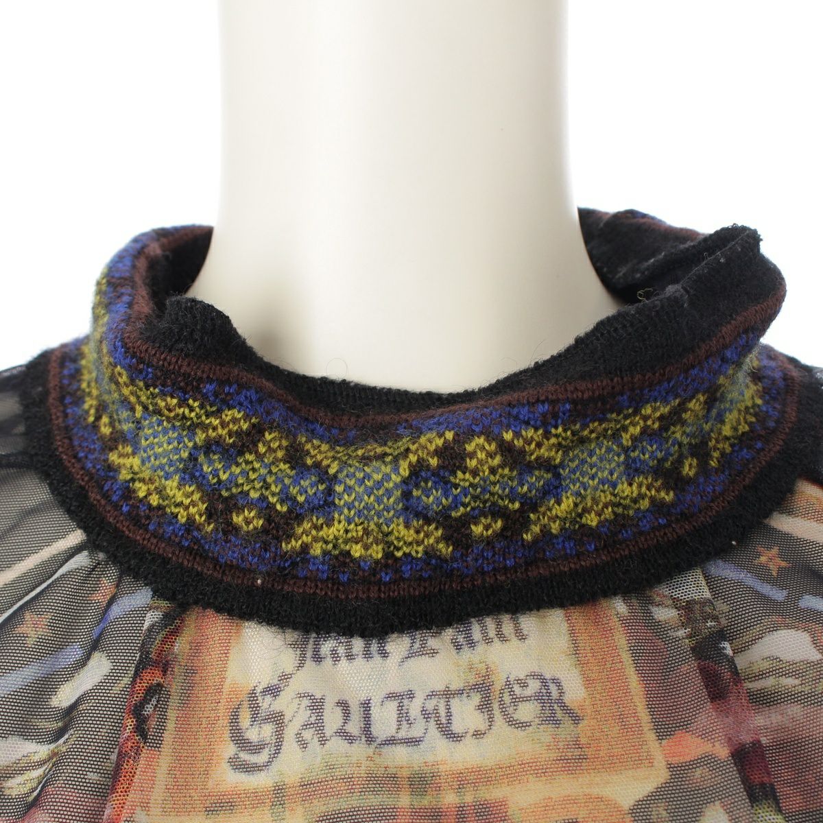 ジャンポールゴルチエ パワーネット ニット切替 ステンドグラス 教会 カットソー トップス マルチカラー 40