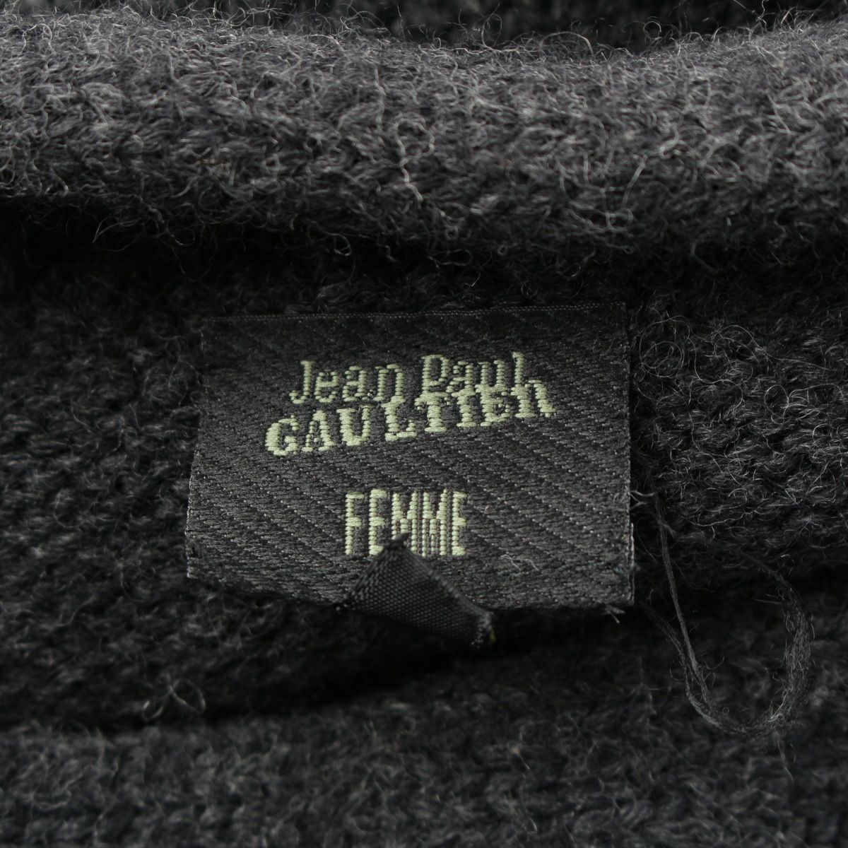 ジャンポールゴルチエ 90s ジャンポールゴルチエ ファム ウール 変形 ボートネック トリム ニット ミニ ドレス ワンピース ダークグレー 40