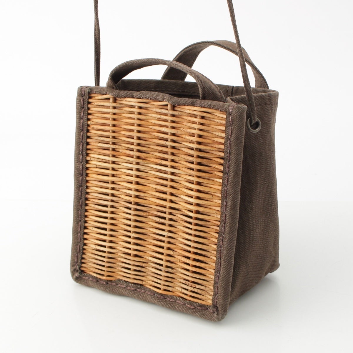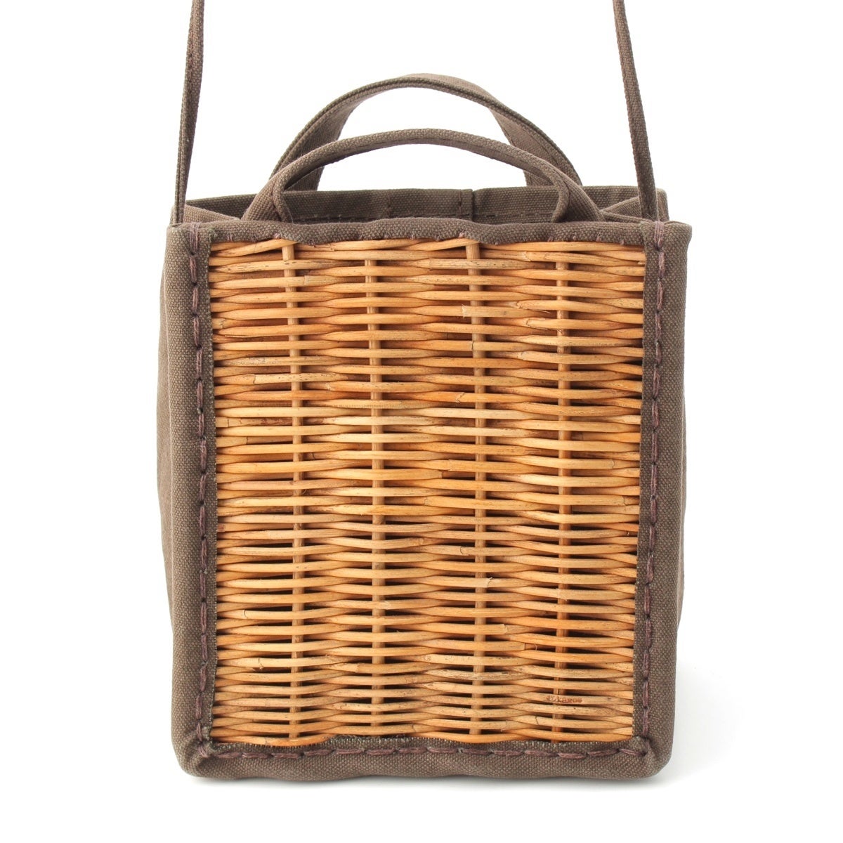 エバゴス KAGOBUKURO キャンバス 紅籐 キャンバス切替 2WAYショルダー ハンドバッグ ブラウン カーキ