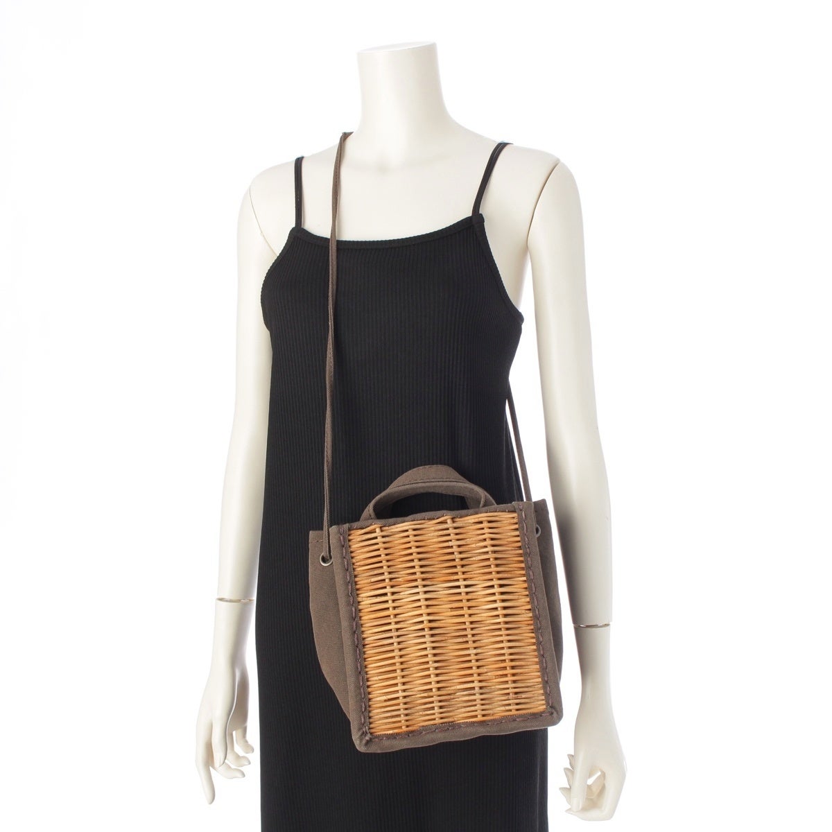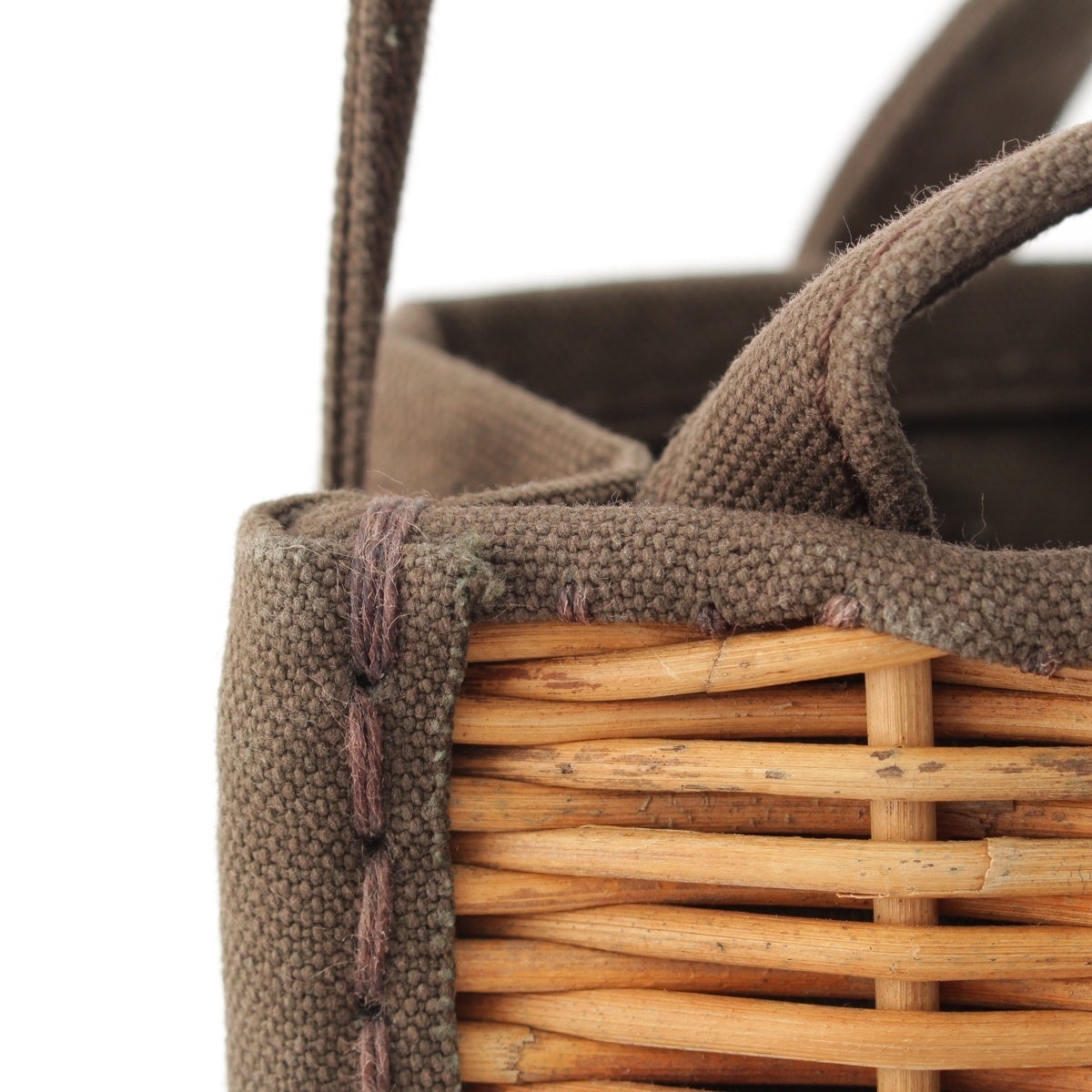 ダメージ箇所: 正面紅籐:スレ・変色あり 背面キャンバス:スレあり 内側ポケット:スレあり 持ち手:スレ・毛羽立ちあり、