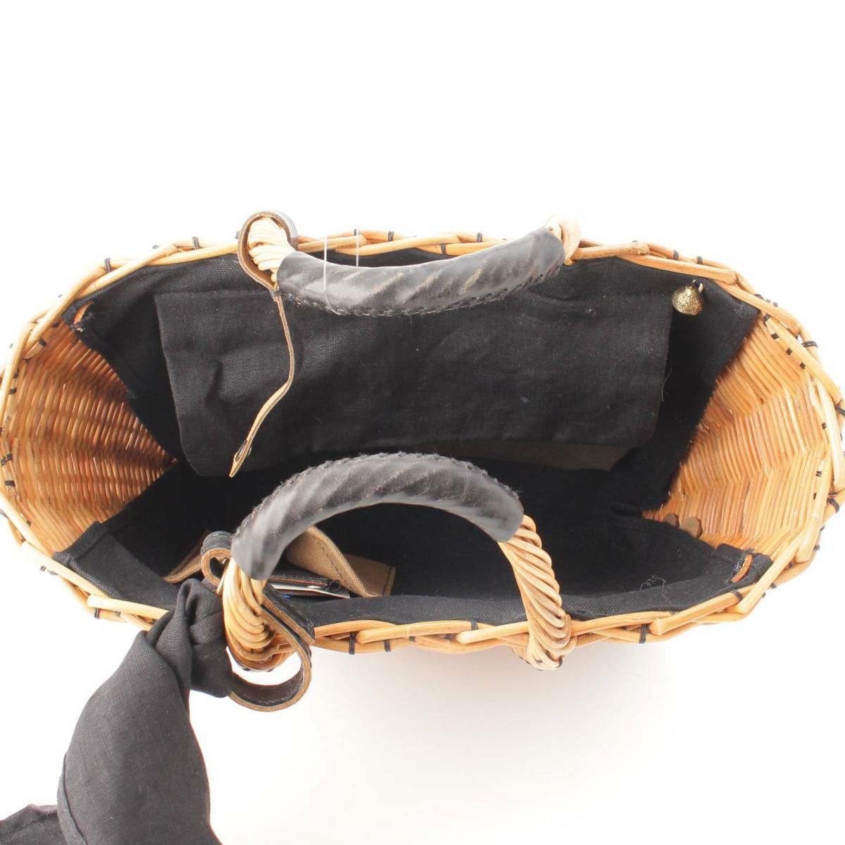 エバゴス ebagos レザーハンドル 紅籐 ラタン ハンドバッグ カゴバッグ ブラウン×ブラック