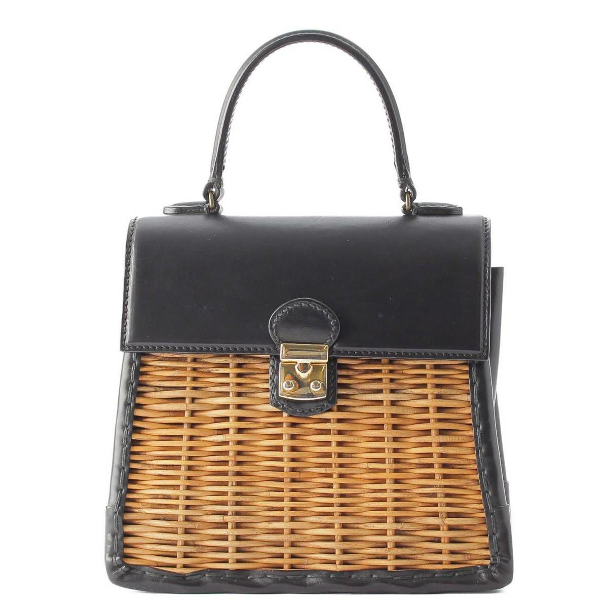 エバゴス ebagos 紅籐×カーフレザー トップハンドル ラフィア ストロー かごバッグ ブラック