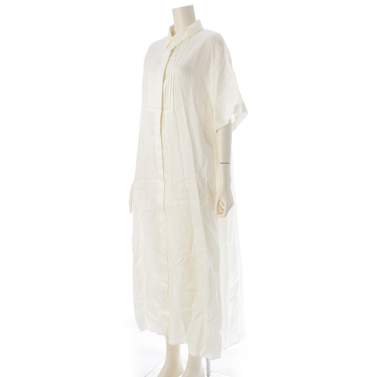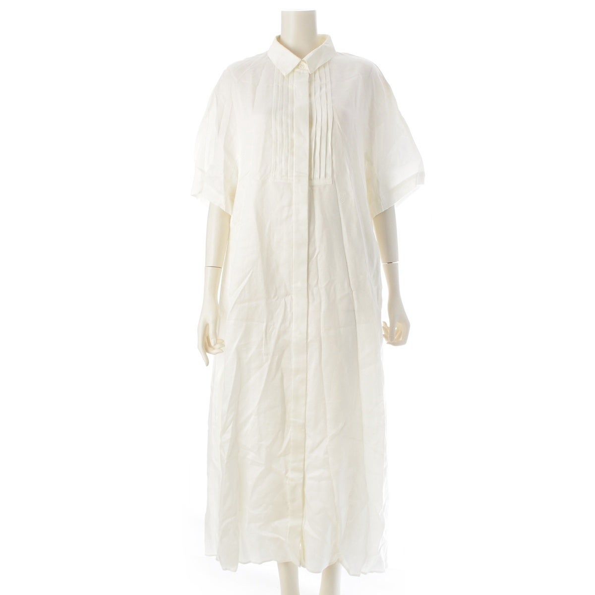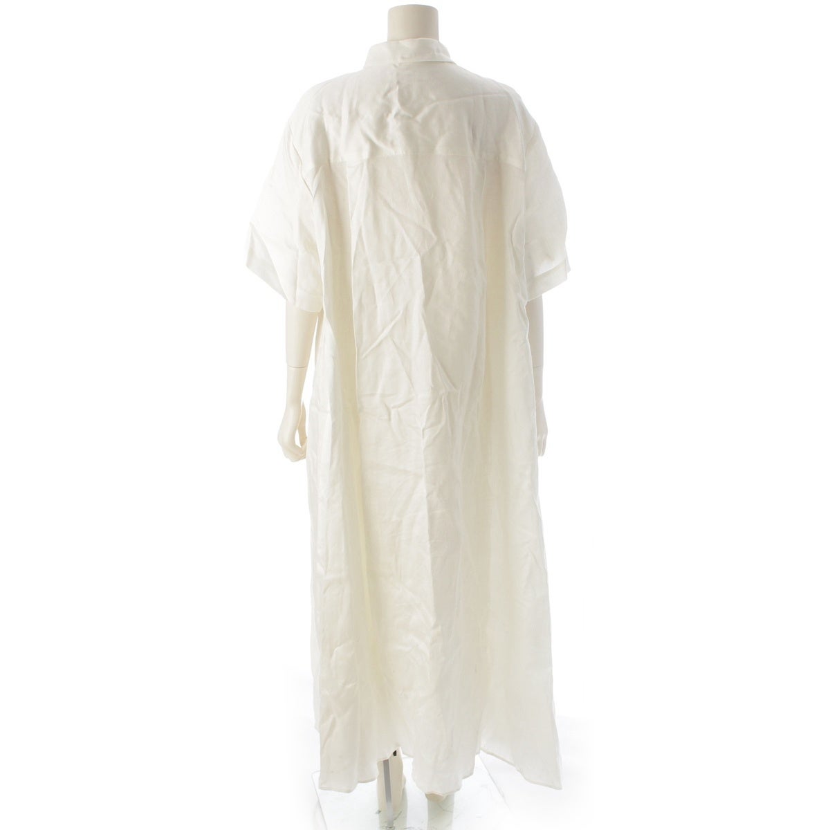 エブール 2025 麻・リネン ラミーサテン シャツ ワンピース 4110300345 アイボリー 38