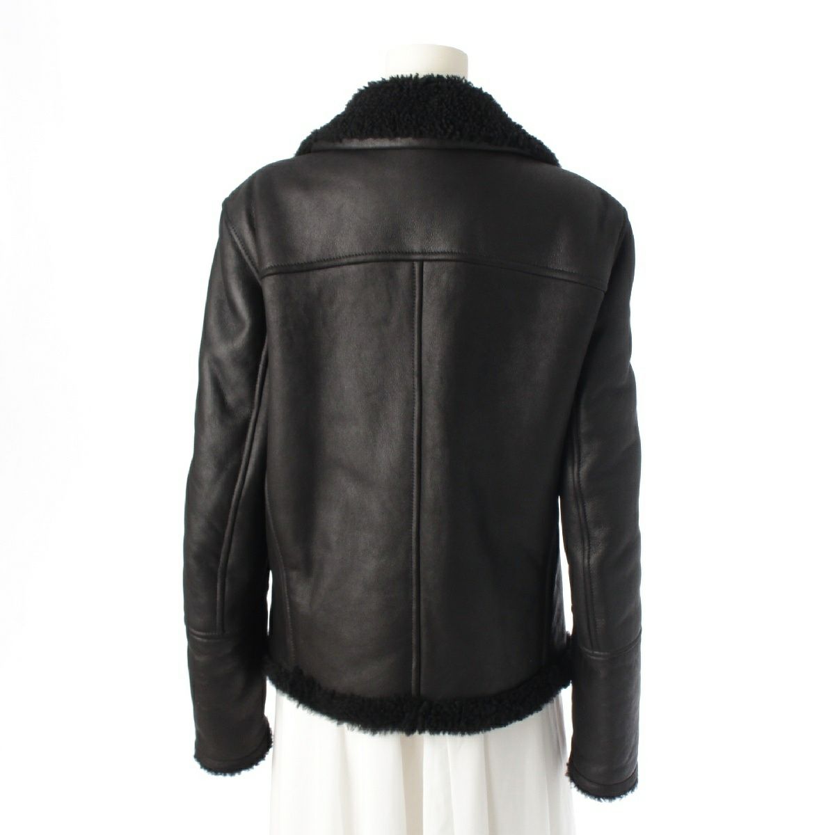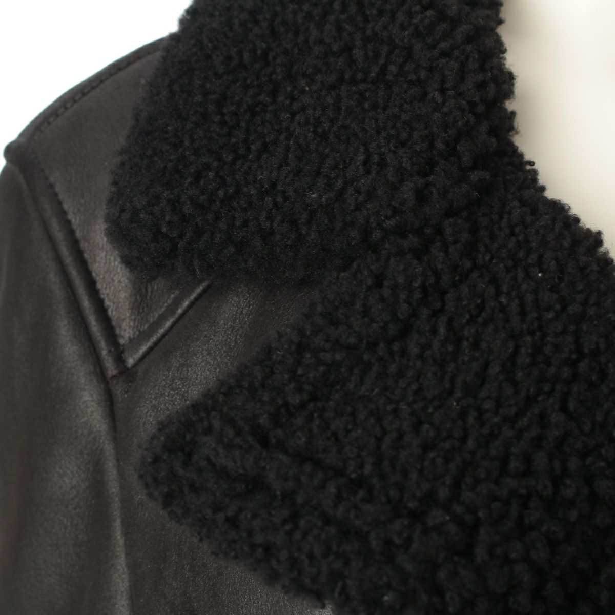 エンメティ ラムレザー ムートン ライダースジャケット ブラック 48