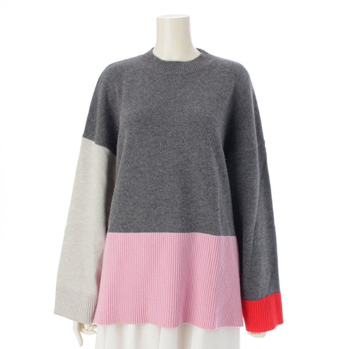 エンフォルド 24SS ウール カラーブロック ボックス ニット プルオーバー トップス 300HS270-0270 マルチカラー グレー 38