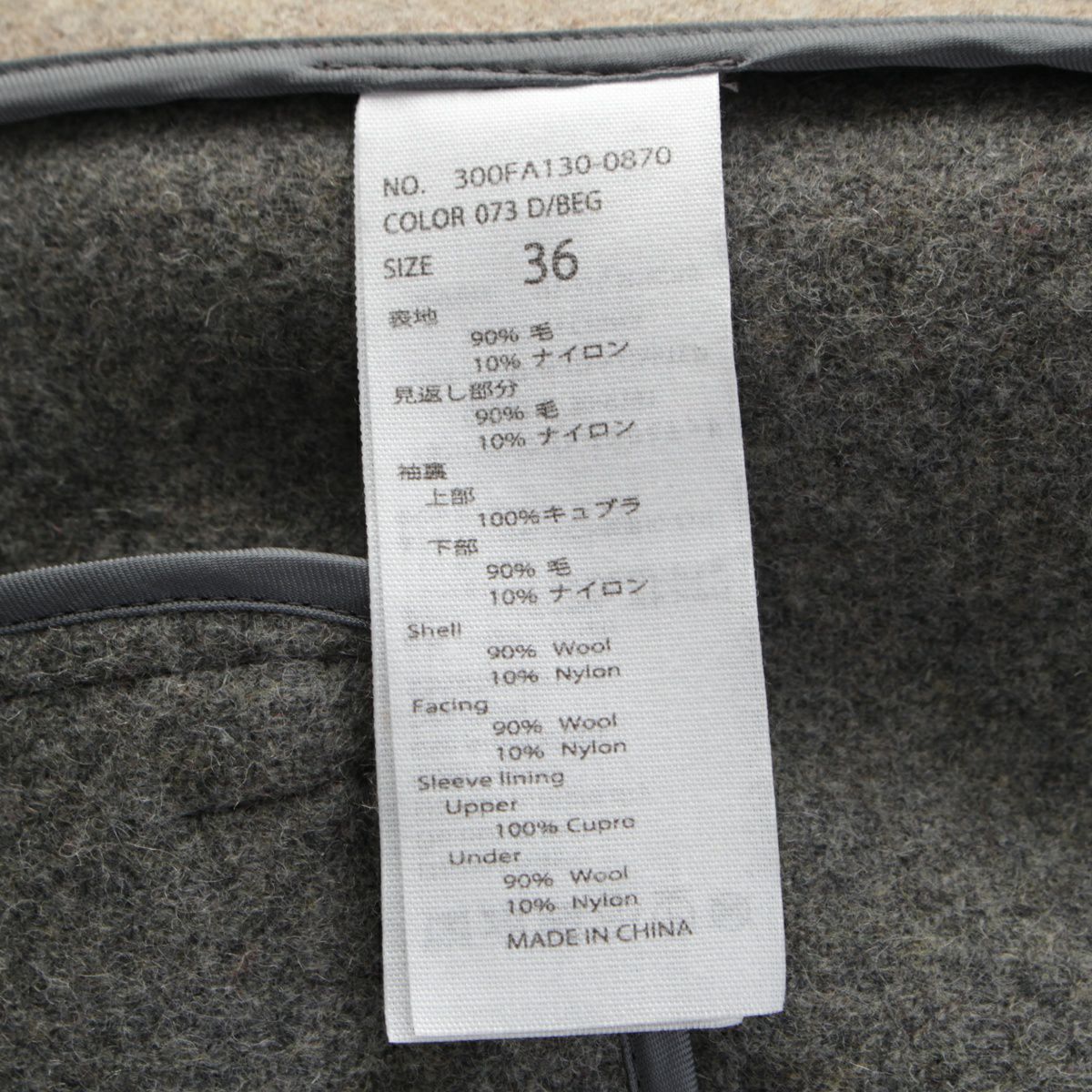 エンフォルド 22AW メルトンウール スクエアカラー BOX コート アウター 300FA130-0870 ベージュ グレー 36