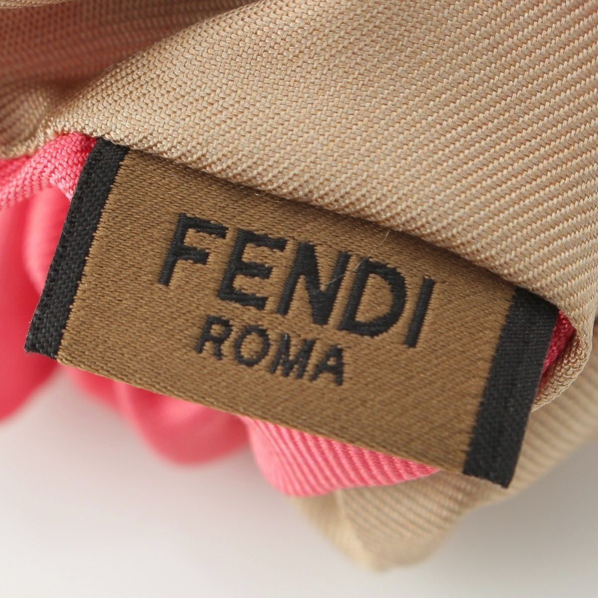 フェンディ シルク ロゴ シュシュ ヘアアクセサリー ベージュ ピンク