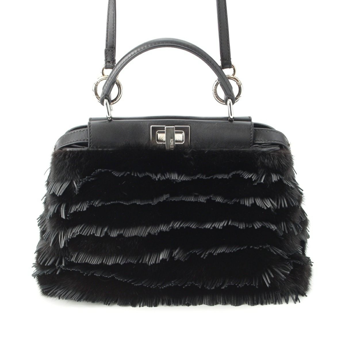 フェンディ ピーカブー ミニ ミンク ファー レザー フリンジ ストラップユー 別売りストラップ付き ハンドバッグ 2way ショルダー 8BN244 ブラック