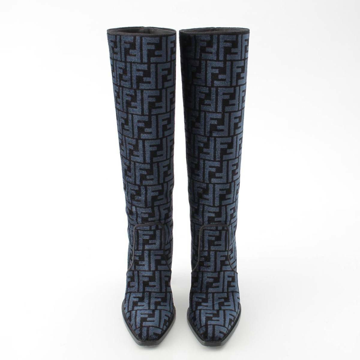 フェンディ 22‐23AW ズッカ FF柄 パイル ヒール ロングブーツ シューズ ブルー 38