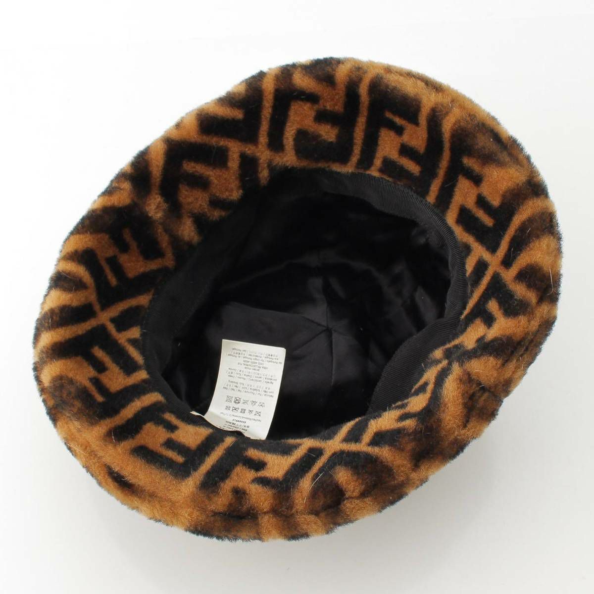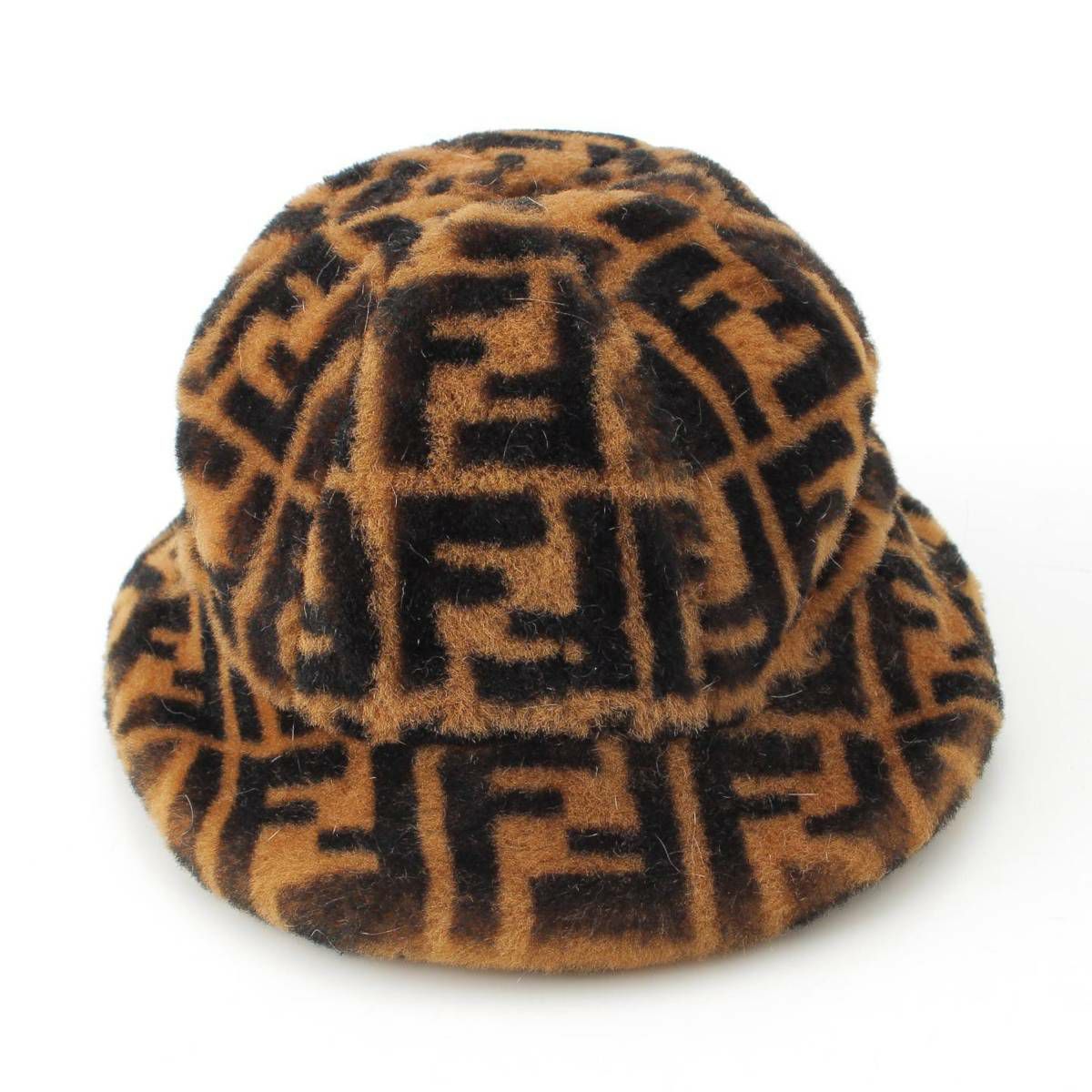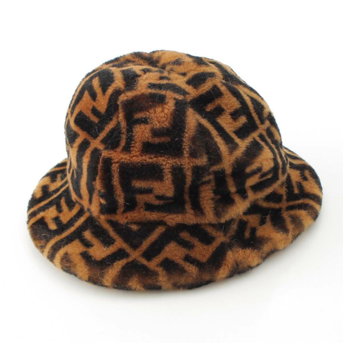 フェンディ Fendi ズッカ柄 ファー バケット ハット 帽子 FXQ632 ブラウン M