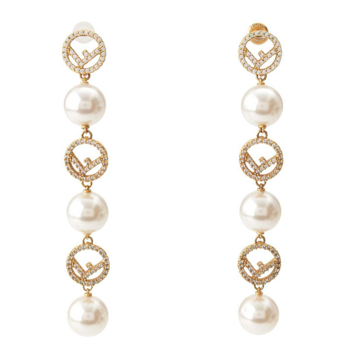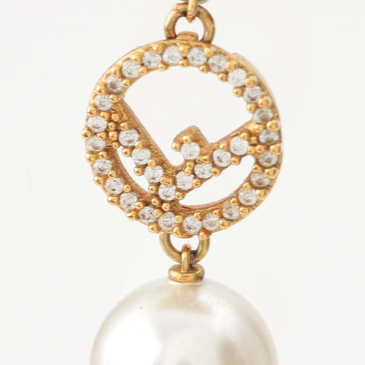 フェンディ エフイズ パール スイング ロゴ ラインストーン ピアス アクセサリー ゴールド