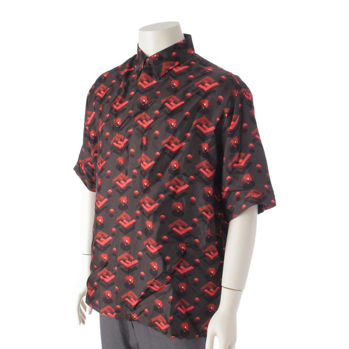 フェンディ Fendi 22年 メンズ FFモチーフ シルク 半袖 シャツ トップス FS0795 ブラック 41