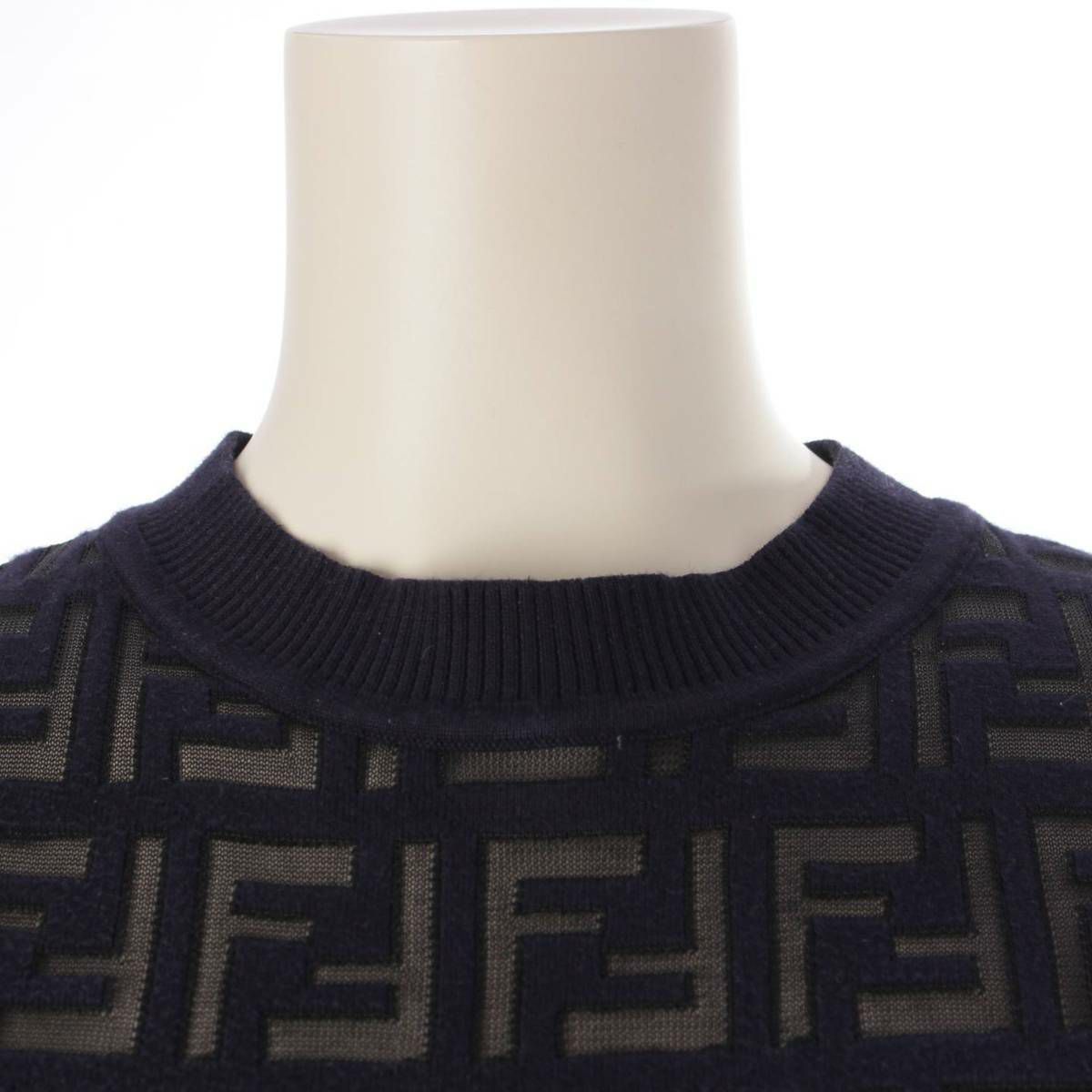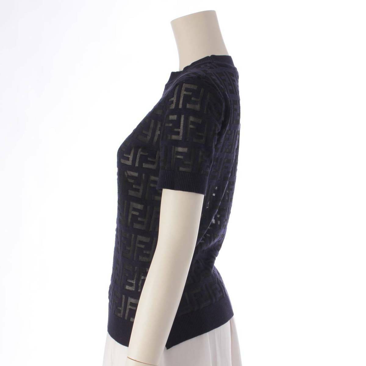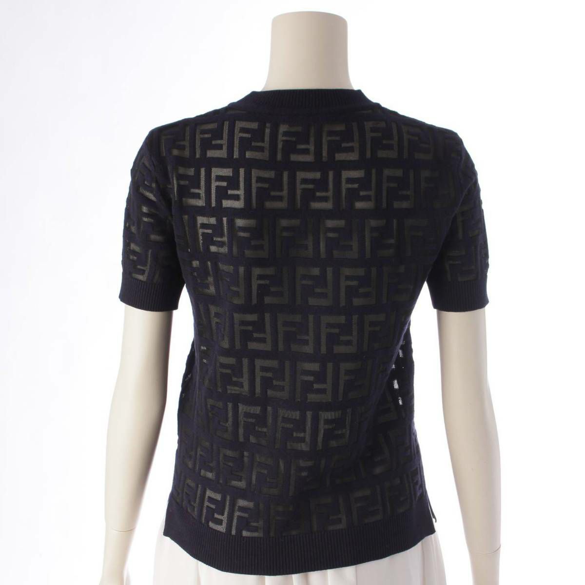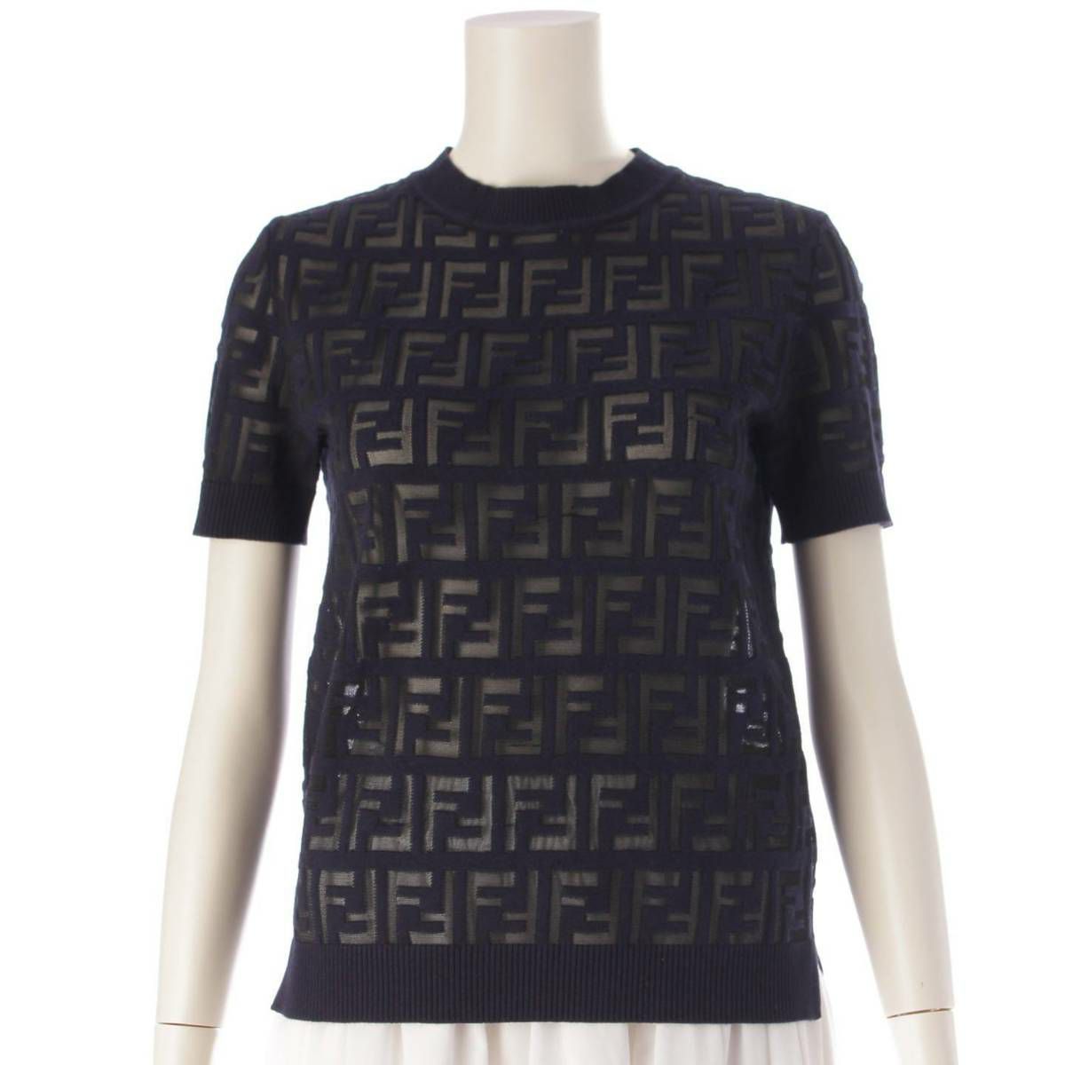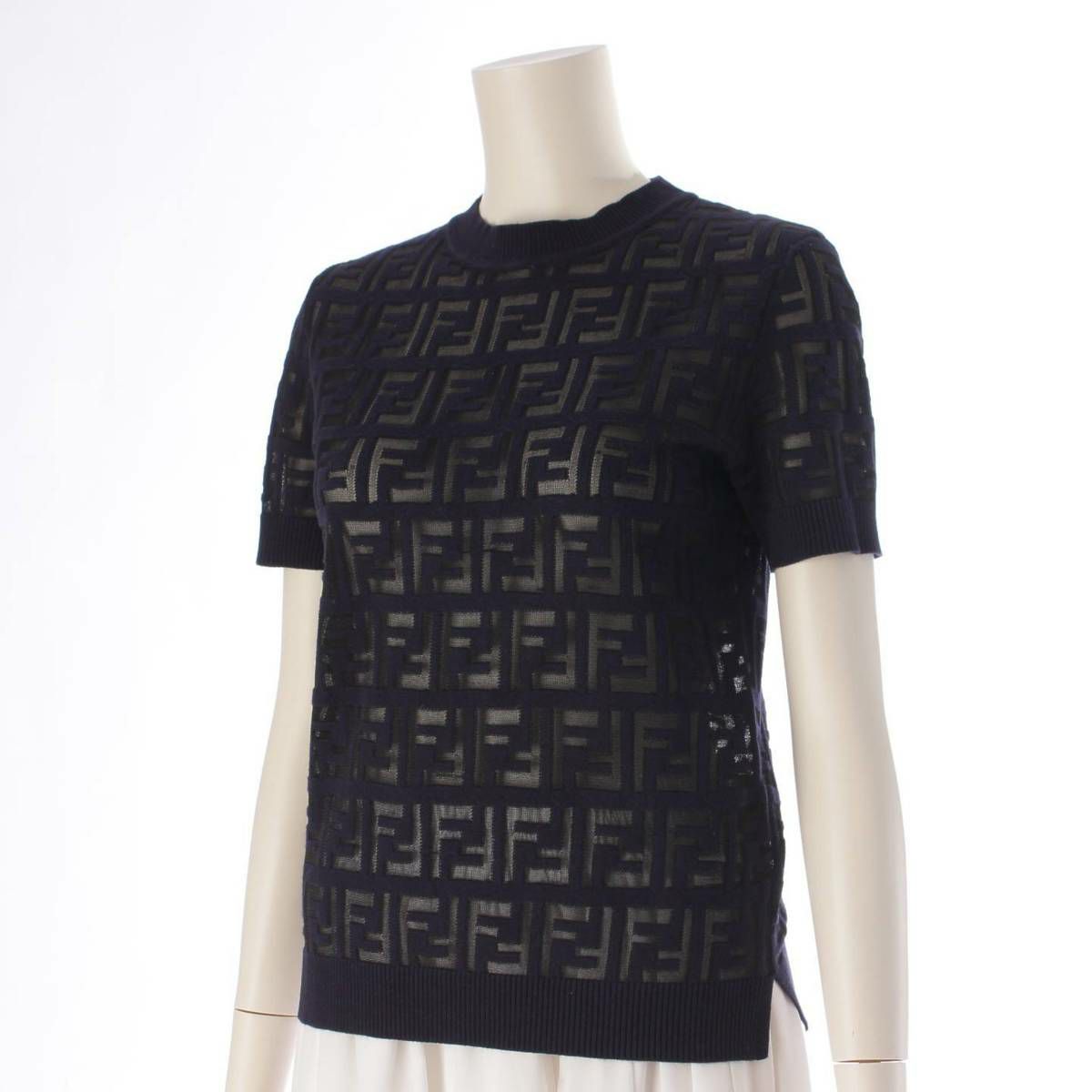 フェンディ Fendi FFロゴ 半袖 シースルー ニット カットソー Tシャツ FZY793 ネイビー 36