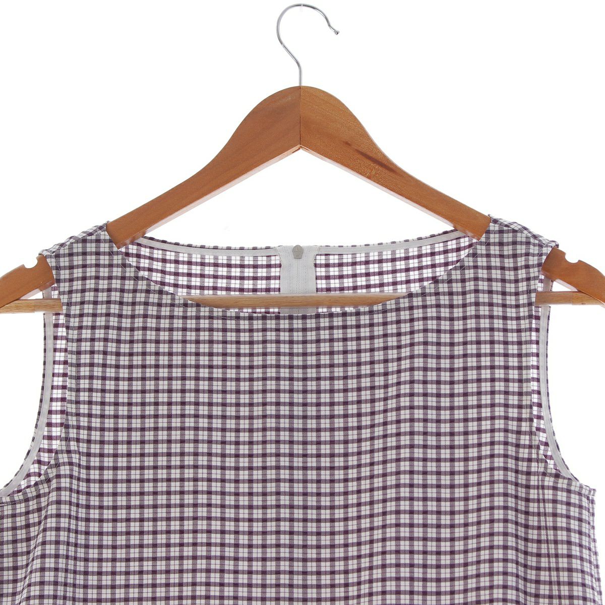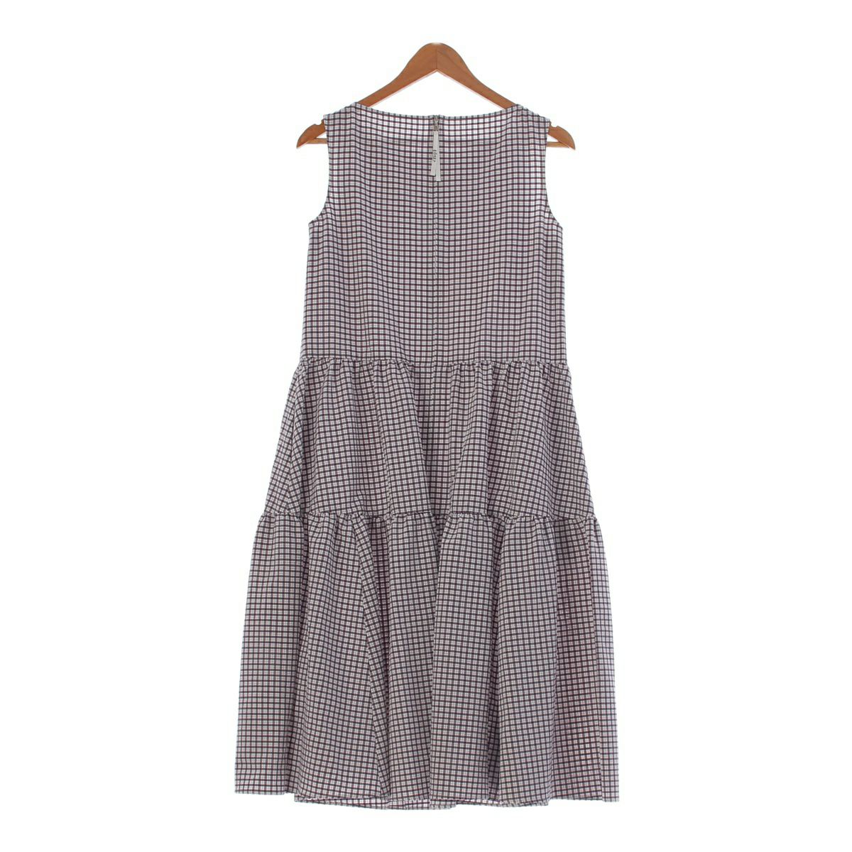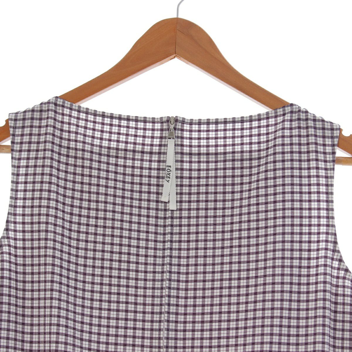 フォクシー 23年 メリア ノースリーブ チェック柄 シアサッカー ギャザー ワンピース ドレス 43852 ホワイト ブラック 40