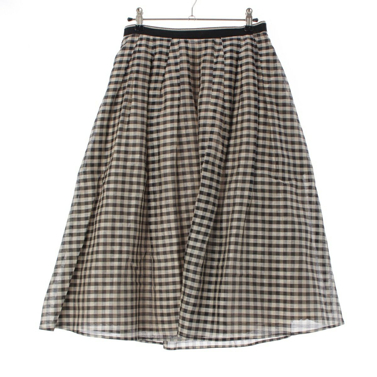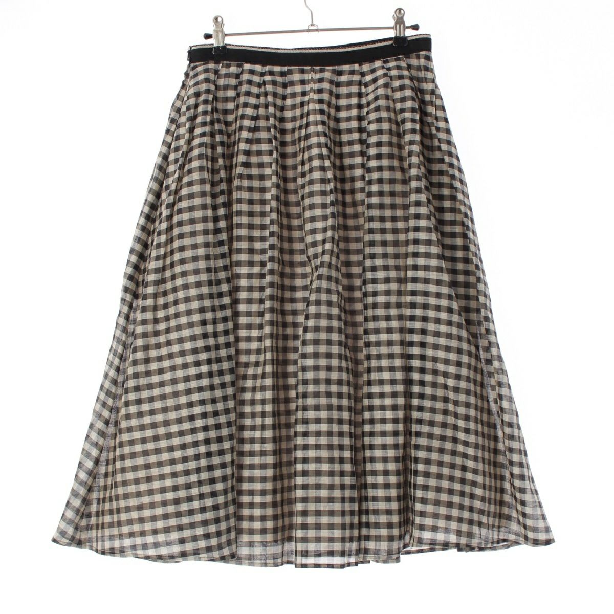 フォクシー 22年 リネン×シルク フレンチギンガム スカート 42696 ブラック 40