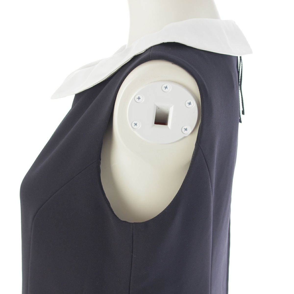 フォクシー 22年 ドレスイルーザ 白襟 ノースリーブ ワンピース 43092 ミッドナイトブルー ブラック 38