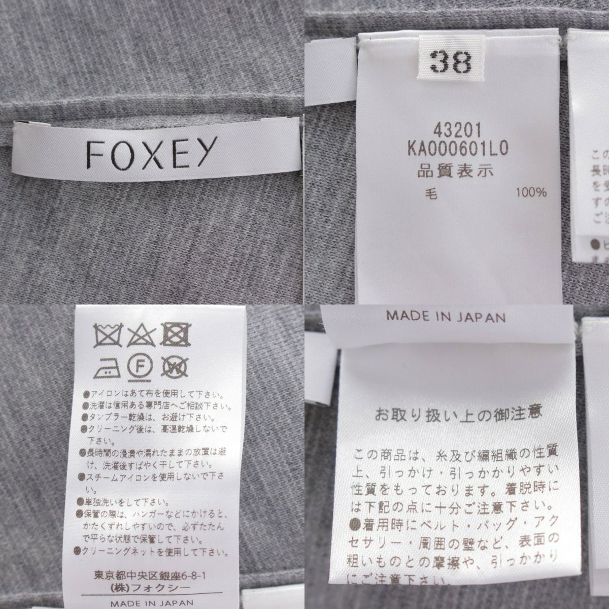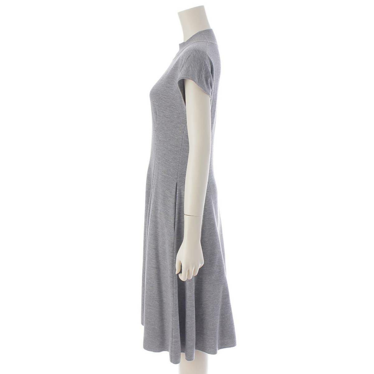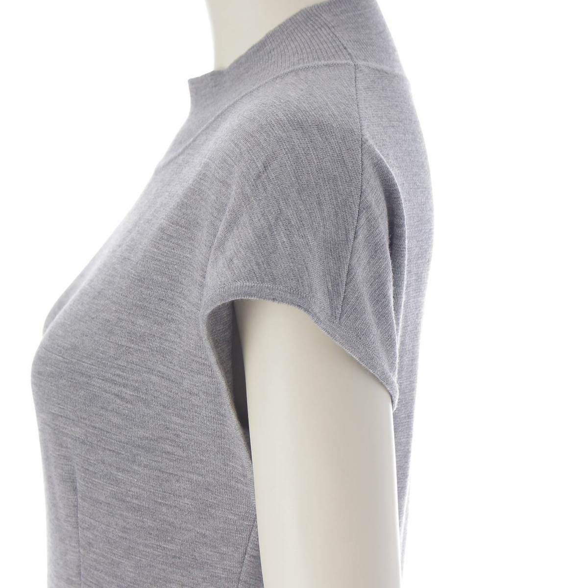 フォクシー Foxey 22年 ウール ニット ブロックリン ノースリーブ ワンピース 43201 グレー 38
