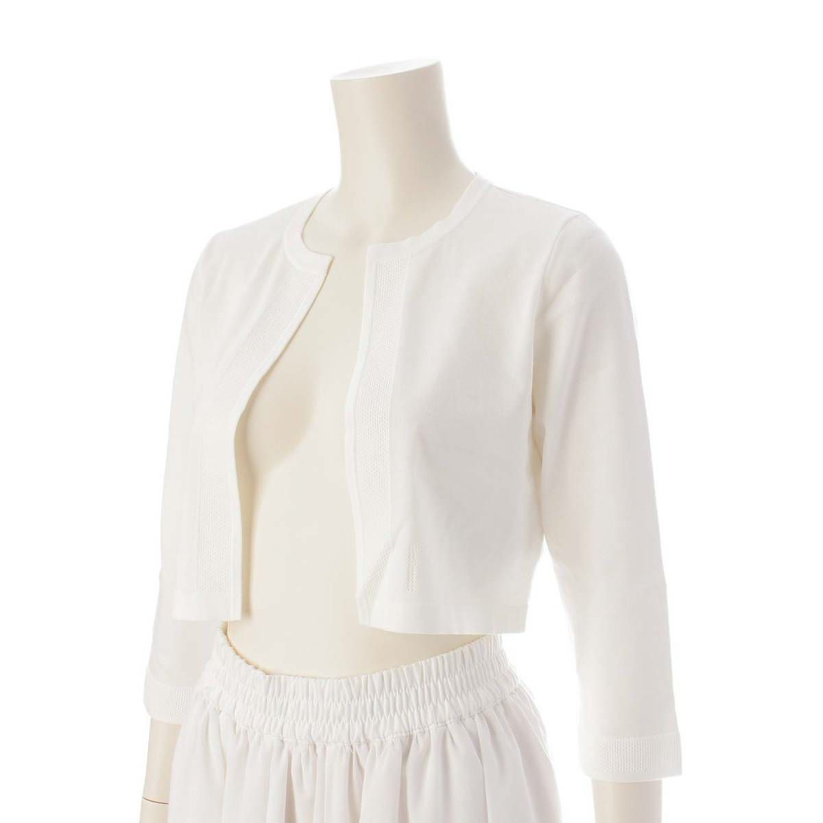 フォクシー Foxey 23年 LILAS アセテート×ナイロン クロップド カーディガン ボレロ 42715 ホワイト 38