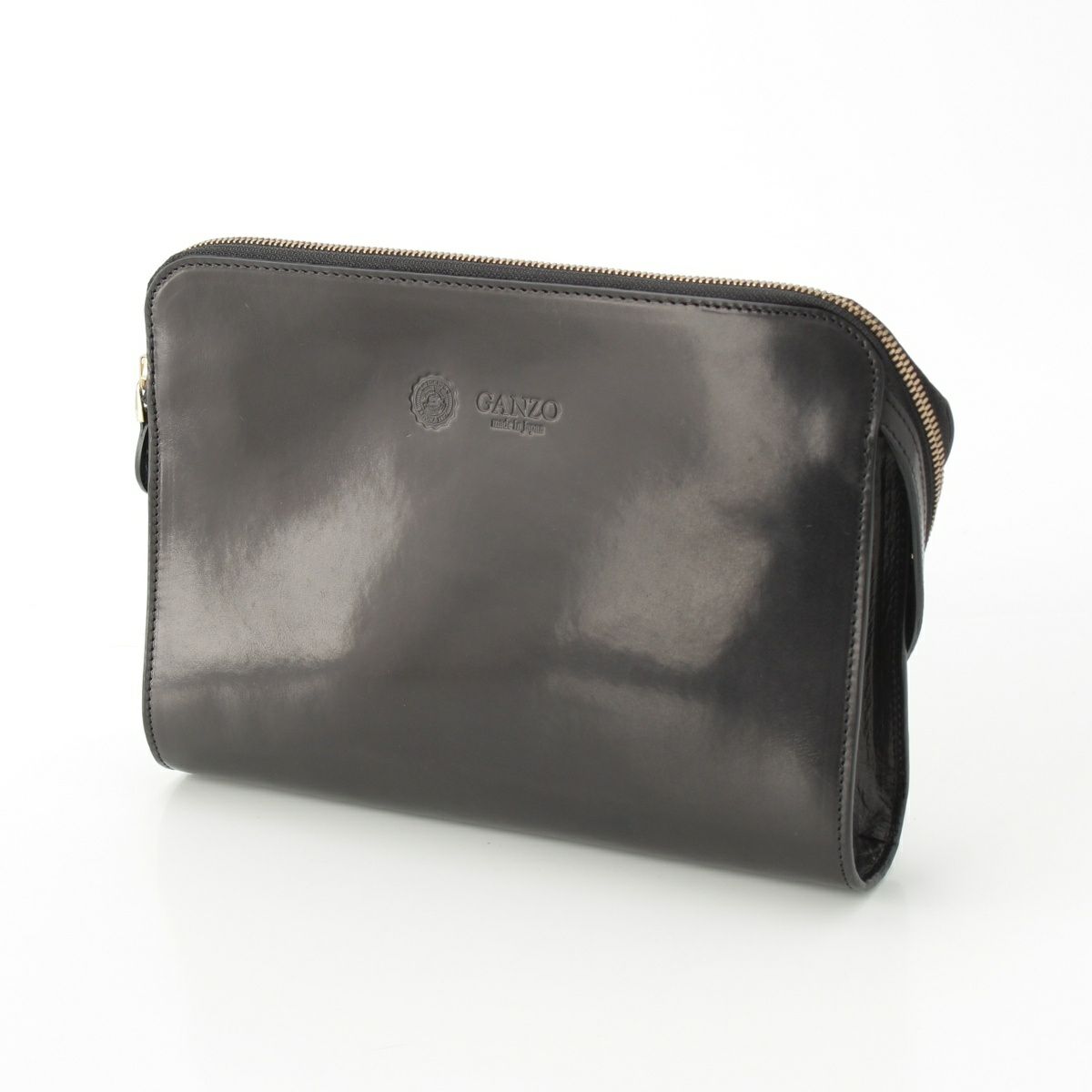 ガンゾ GUD レザー ロゴ刻印 セカンド クラッチバッグ ブラック