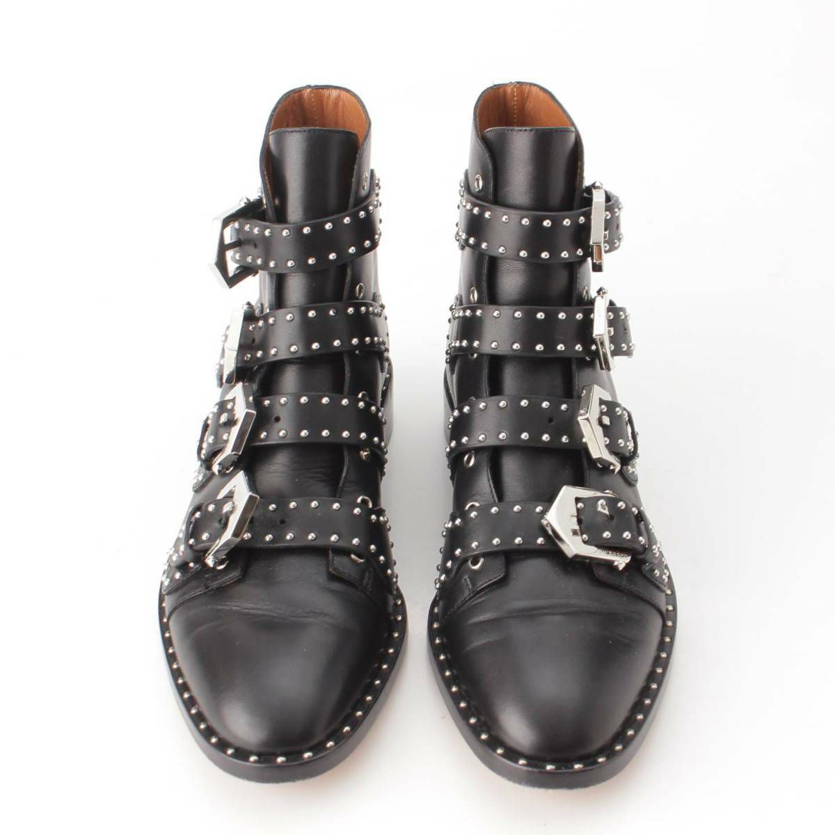 ジバンシィ GIVENCHY レザー スタッズ ベルト アンクル ショートブーツ シューズ ブラック 39