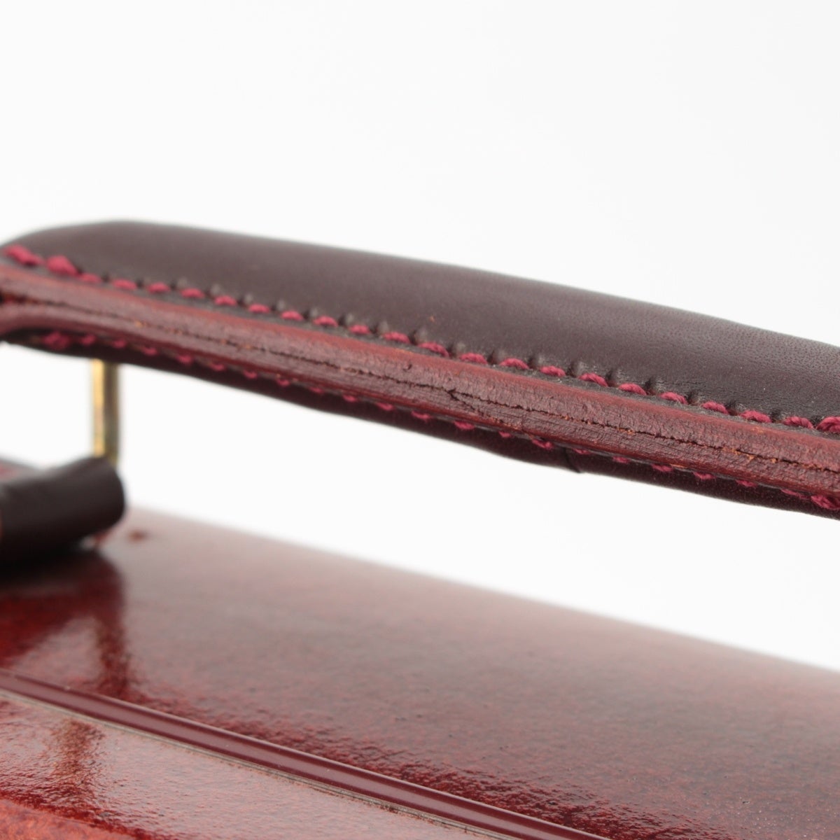 ダメージ箇所: 正面:キズあり 背面:キズあり 底面金具:スレあり 底角:キズ・スレあり 金具鍵部分:キズ・スレ・サビあり 持ち手:毛羽立ち・キズあり 内側金具:汚れあり、