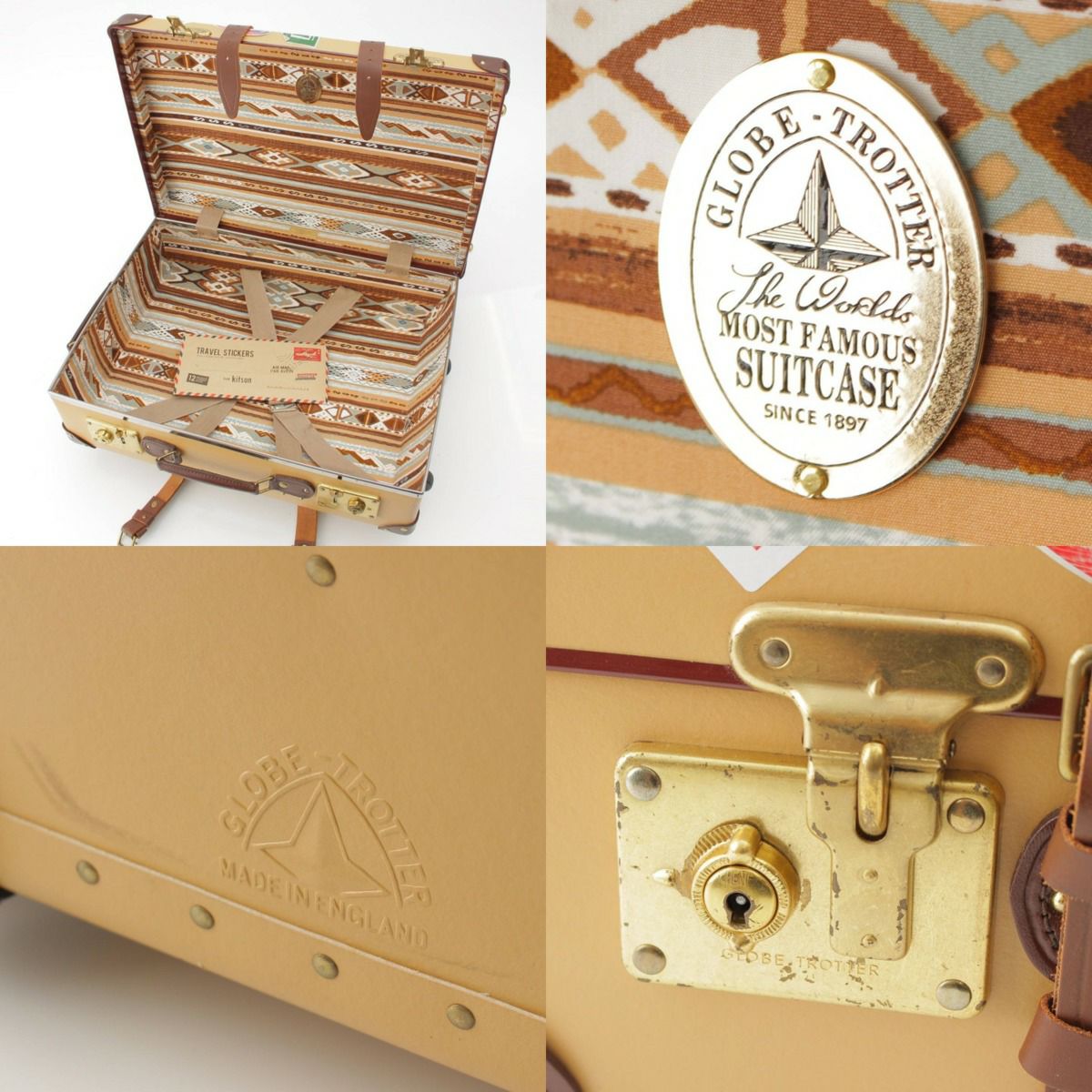 【グローブトロッター】Globe Trotter キットソンコラボ ペイント トローリーケース スーツケース キャリーバッグ ベージュ 【中古】【鑑定済・正規品保証】214414