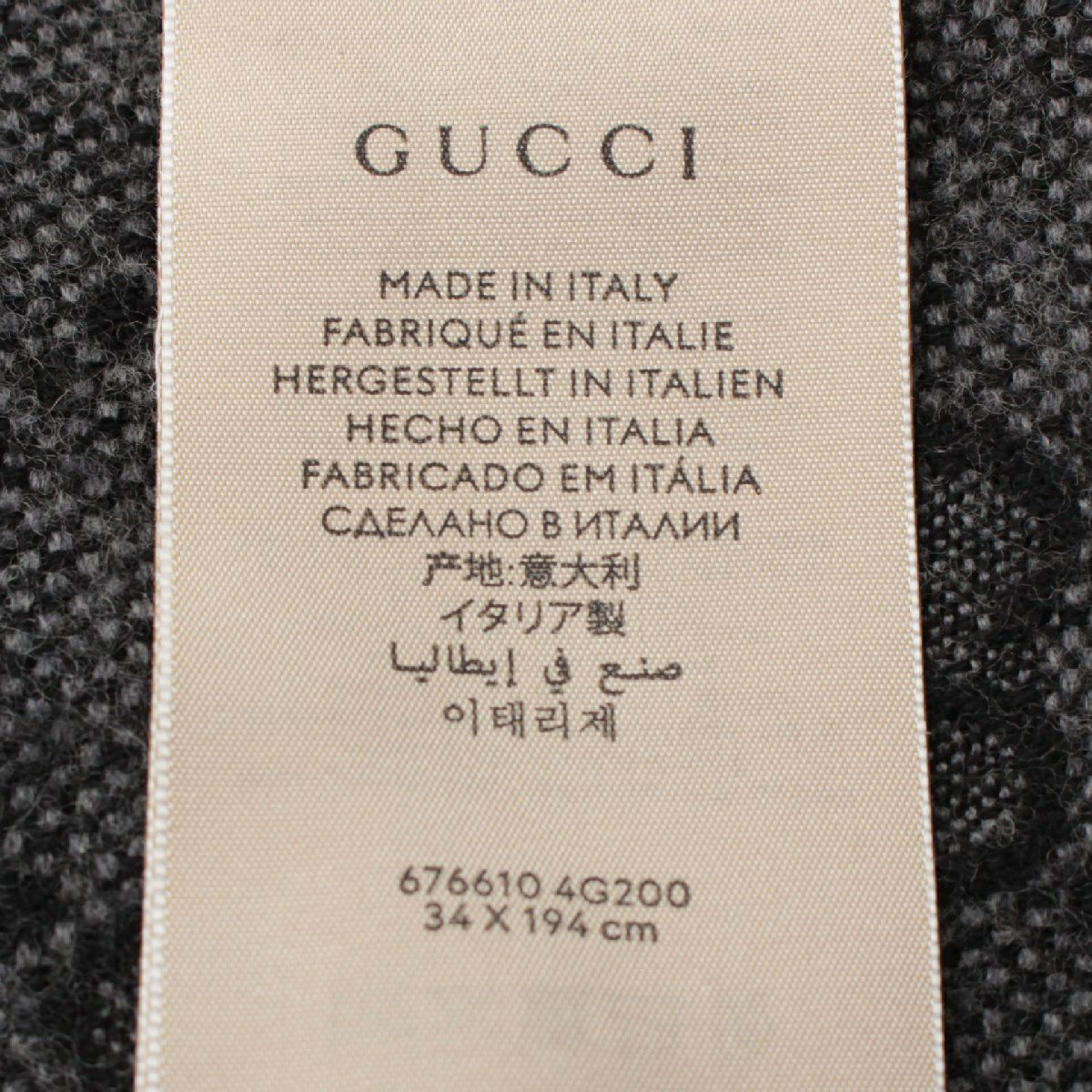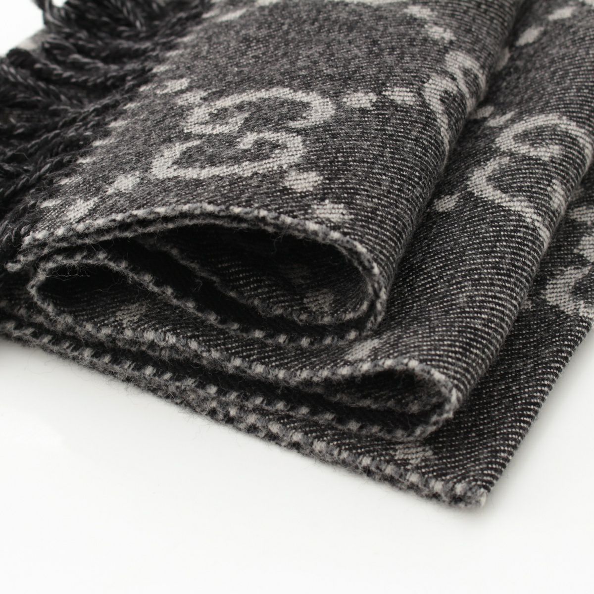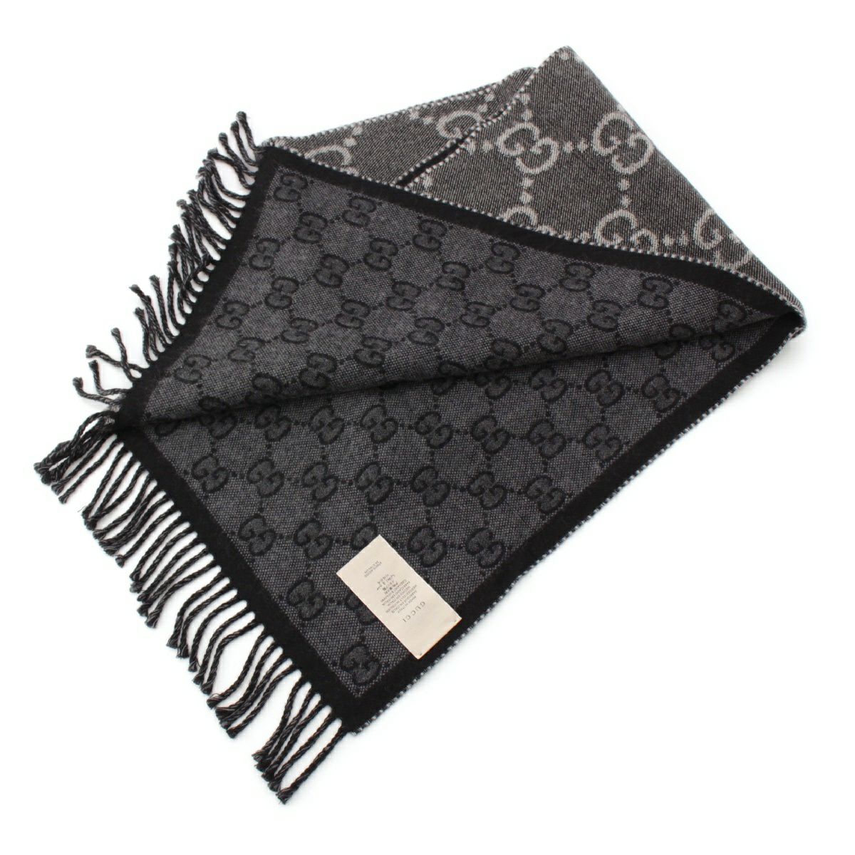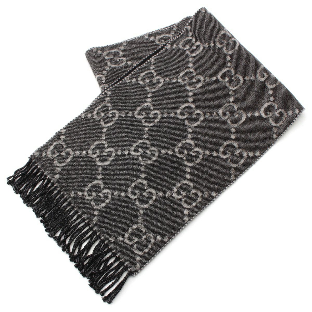 グッチ ウール GGジャガード フリンジ マフラー ストール 676610 グレー