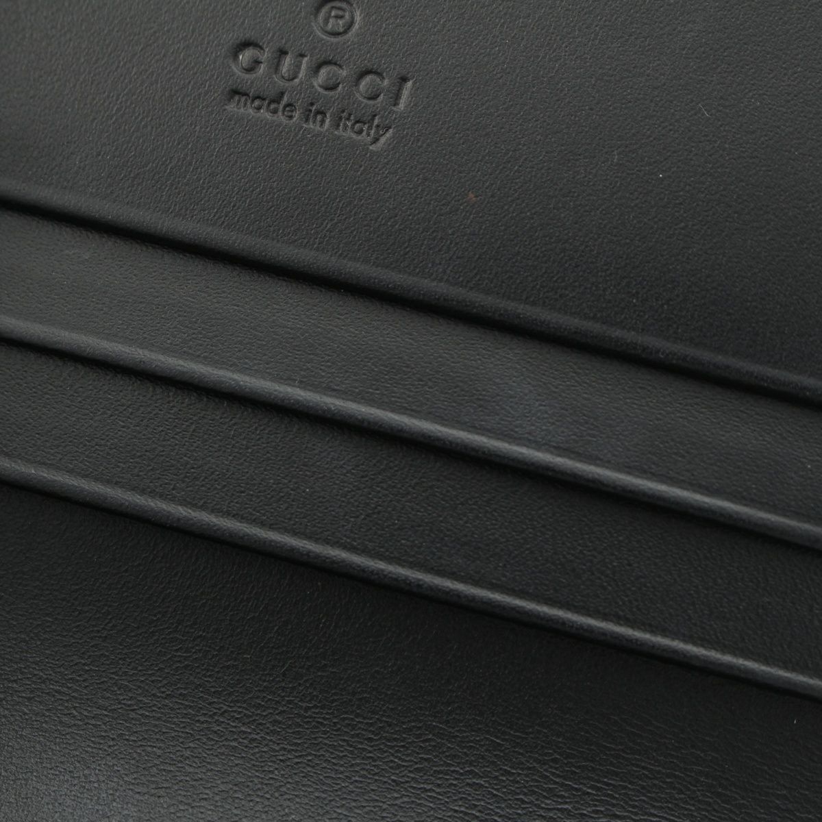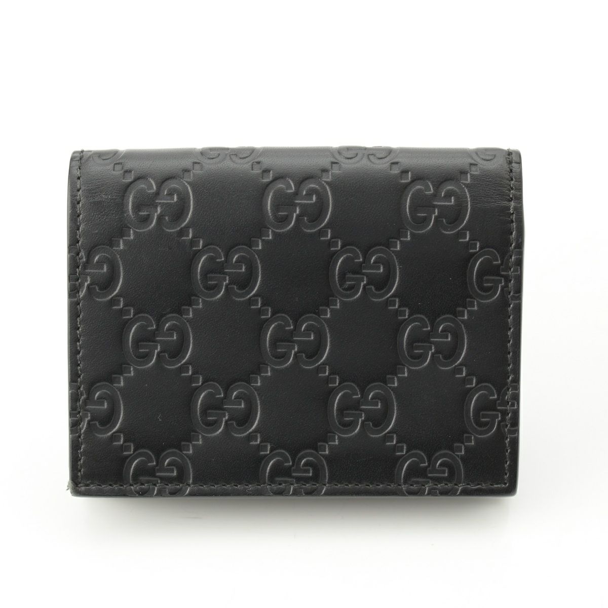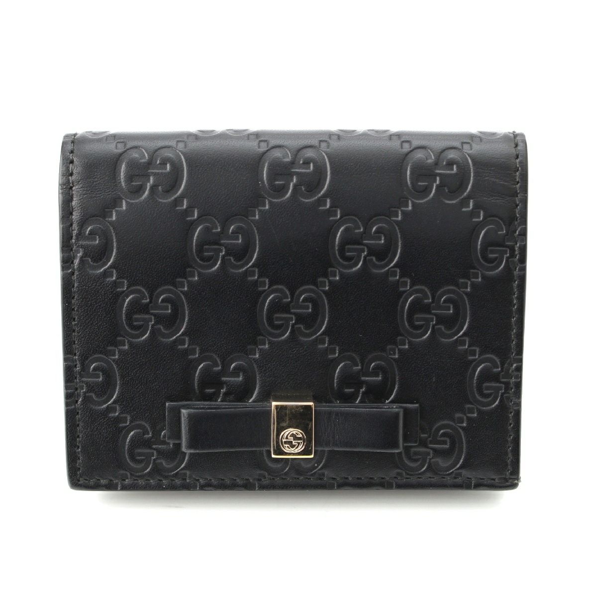 グッチ GGシマ レザー リボン コンパクトウォレット 小物 ロゴ型押し 二つ折り財布 406924 ブラック