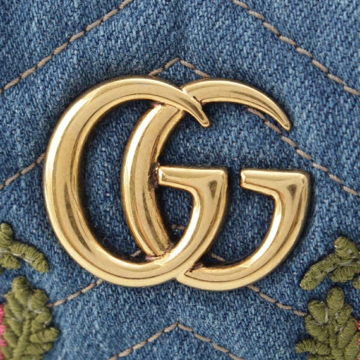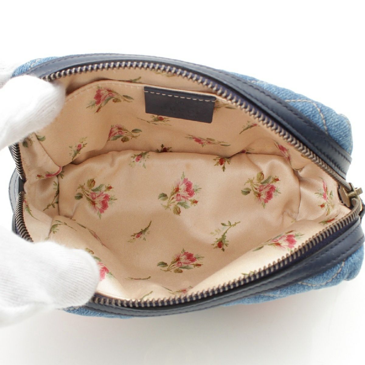 グッチ デニム GGマーモント フラワー ポーチ 小物入れ 476165 ブルー