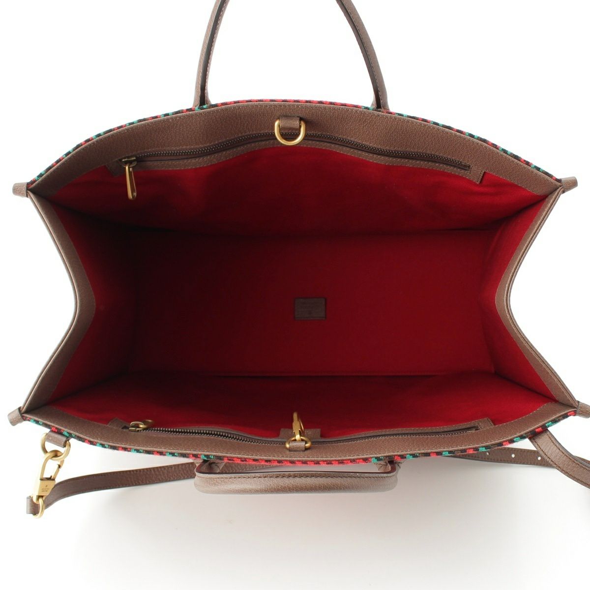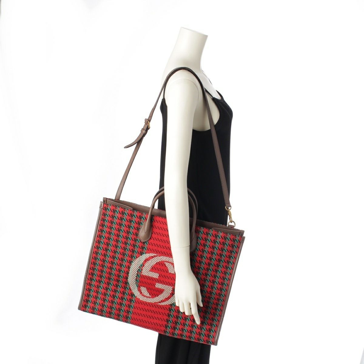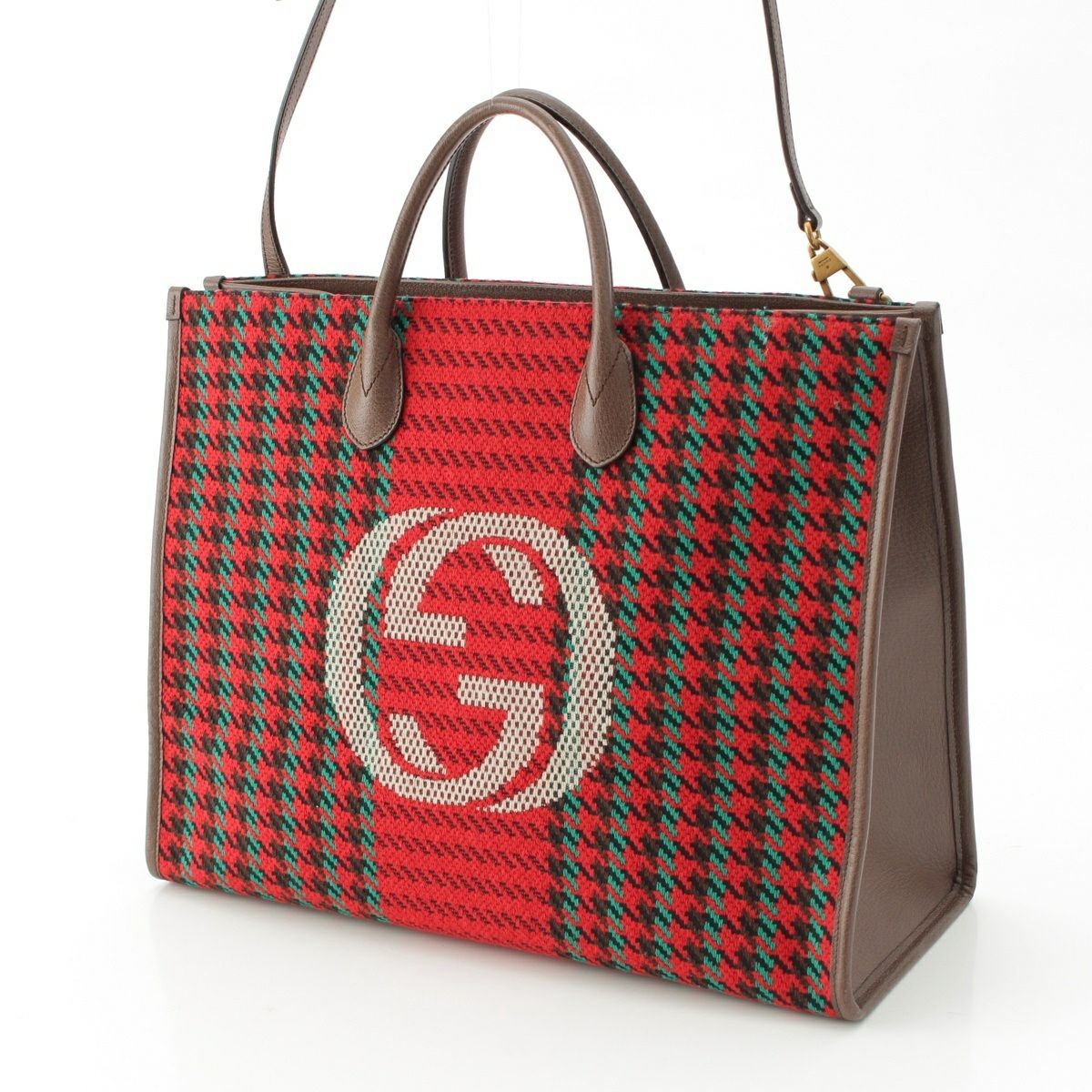 グッチ ウール レザー インターロッキングG ハウンドトゥース 2WAY ショルダー トートバッグ 644994 レッド ブラウン